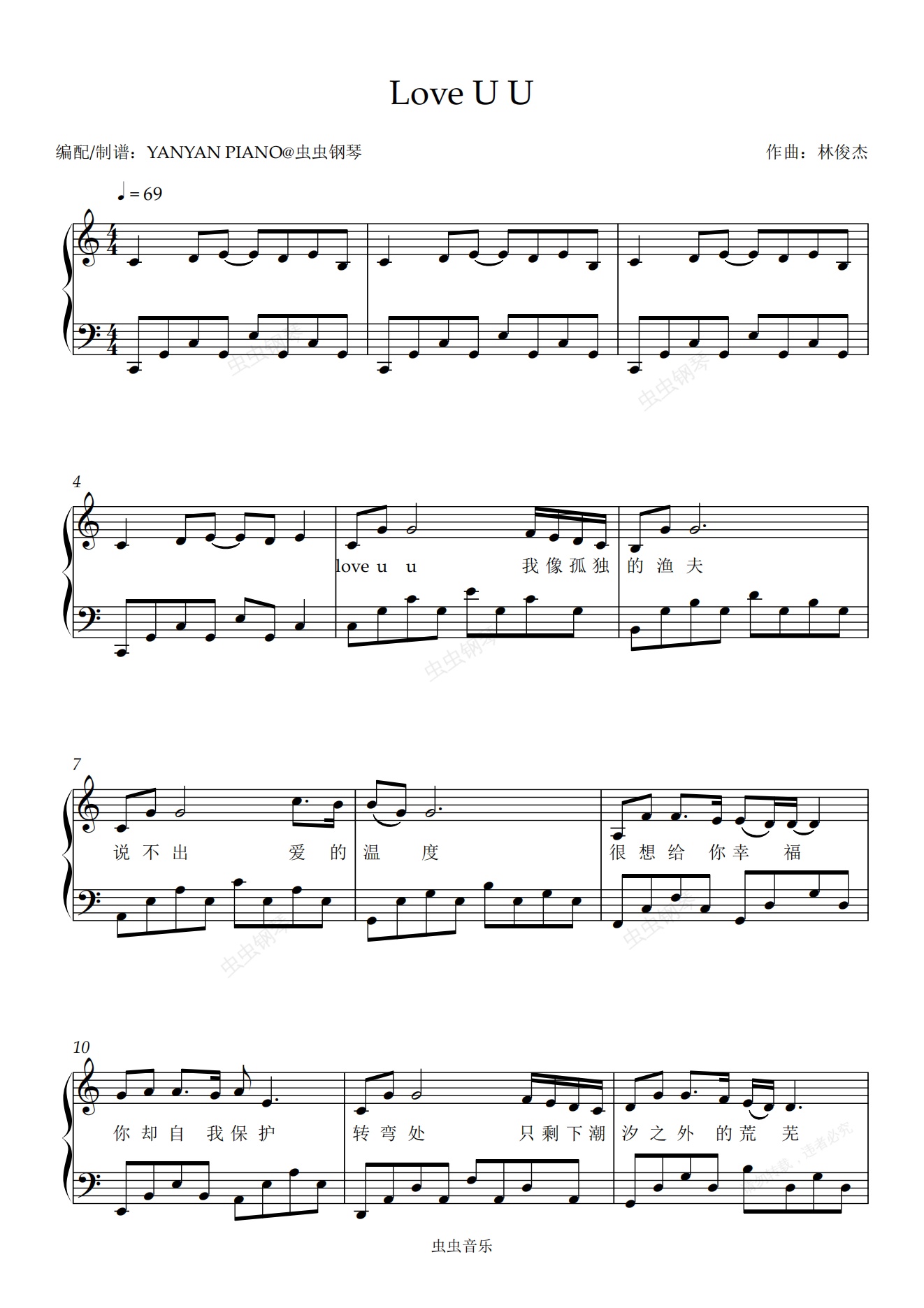 钢琴谱:好听易弹【Love U U】林俊杰 电影《夏日乐悠悠》主题曲