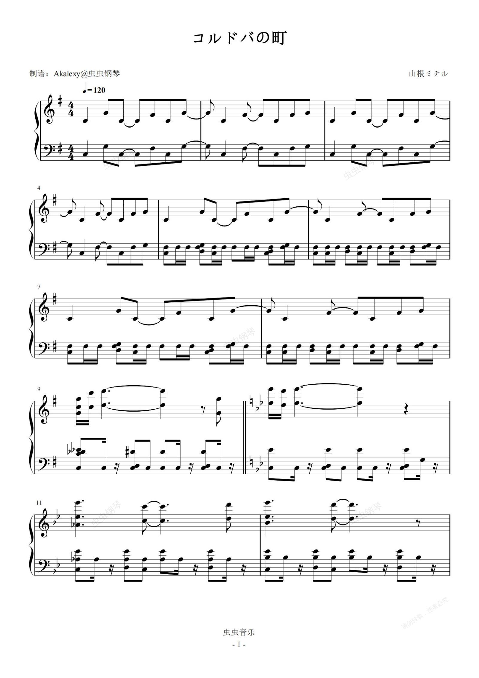钢琴谱:恶魔城·暗黑的诅咒《科尔多瓦城》