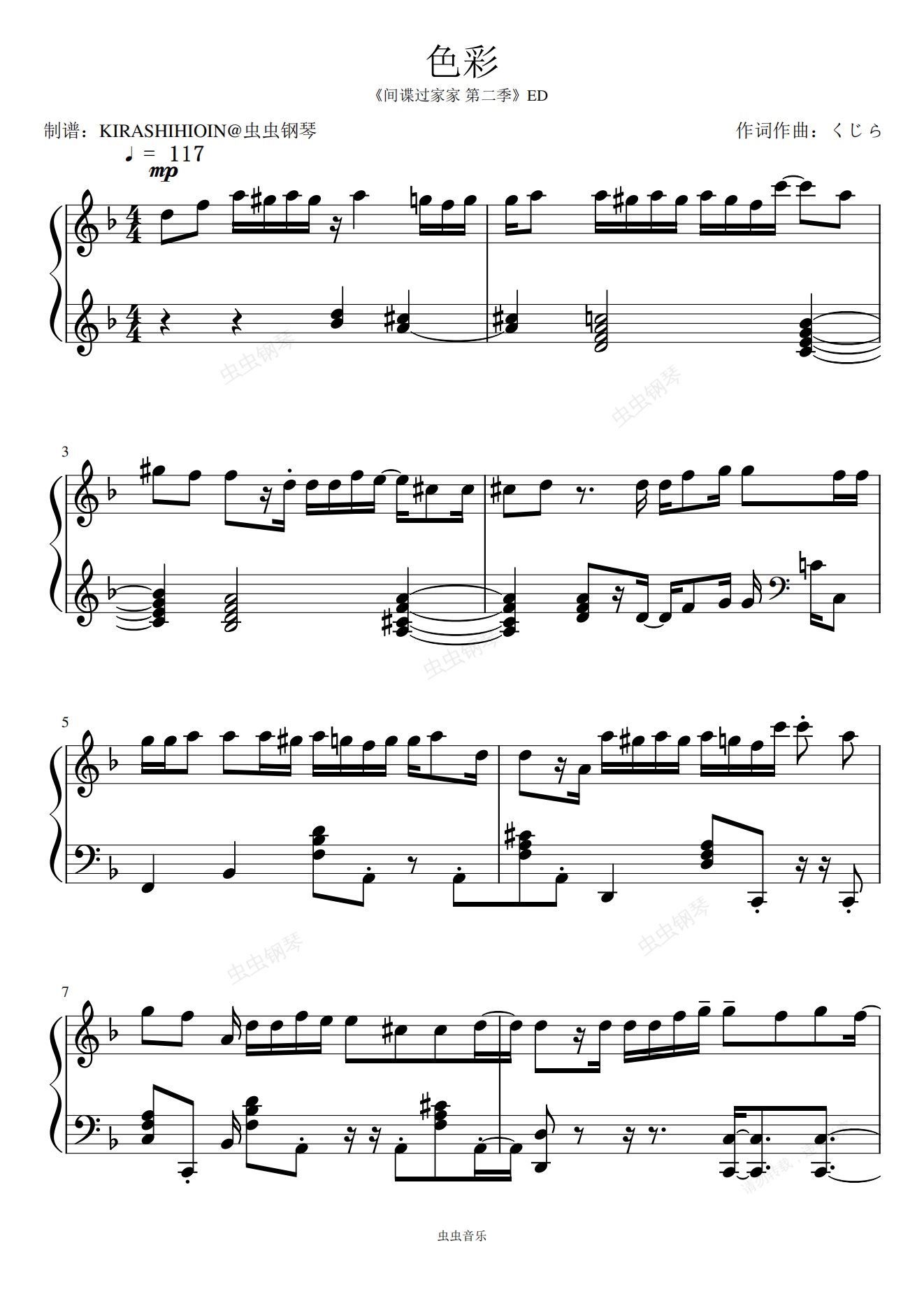 钢琴谱:色彩(《间谍过家家 第二季》ED/片尾曲)- yama