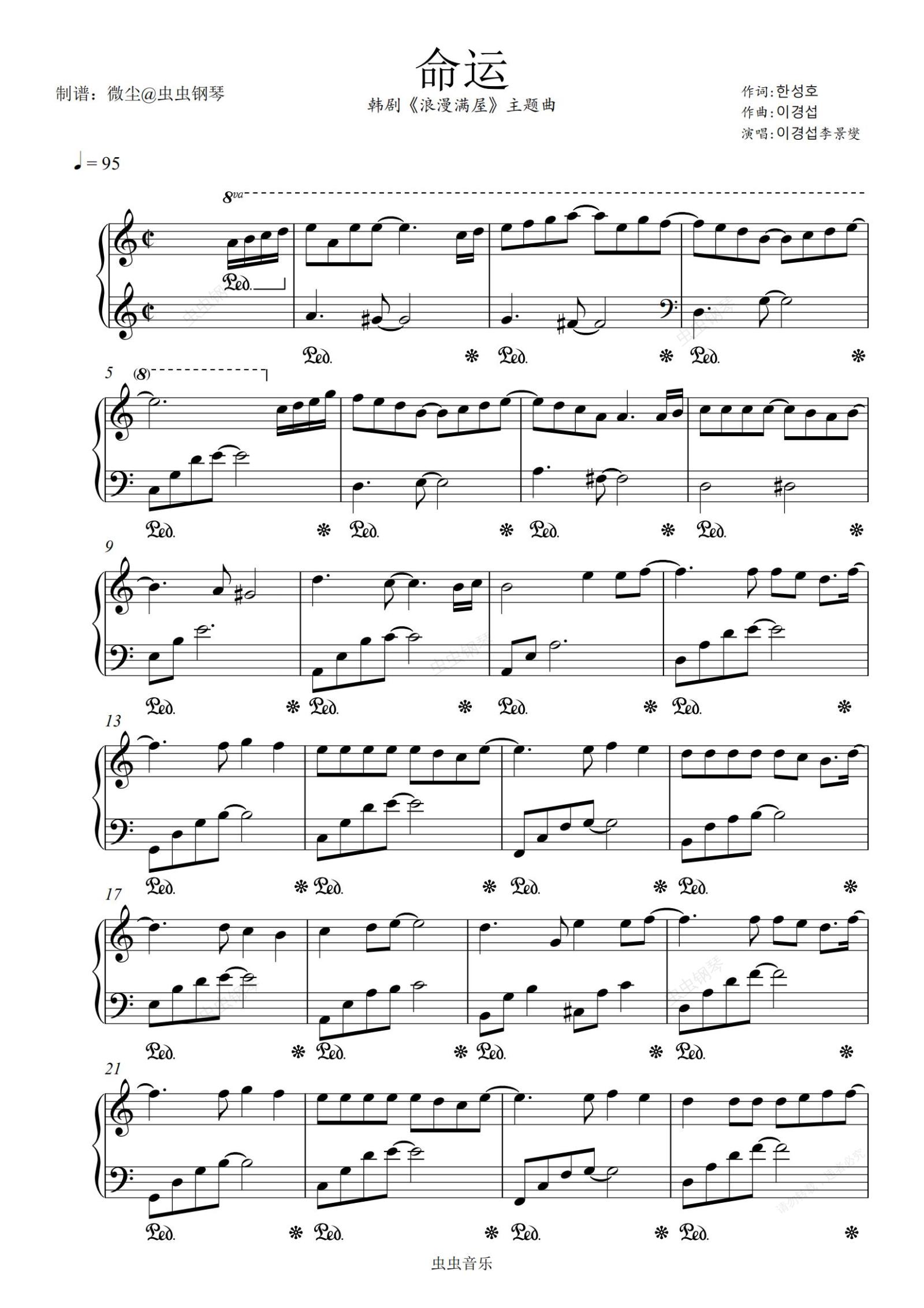 钢琴谱:命运·浪漫满屋主题曲