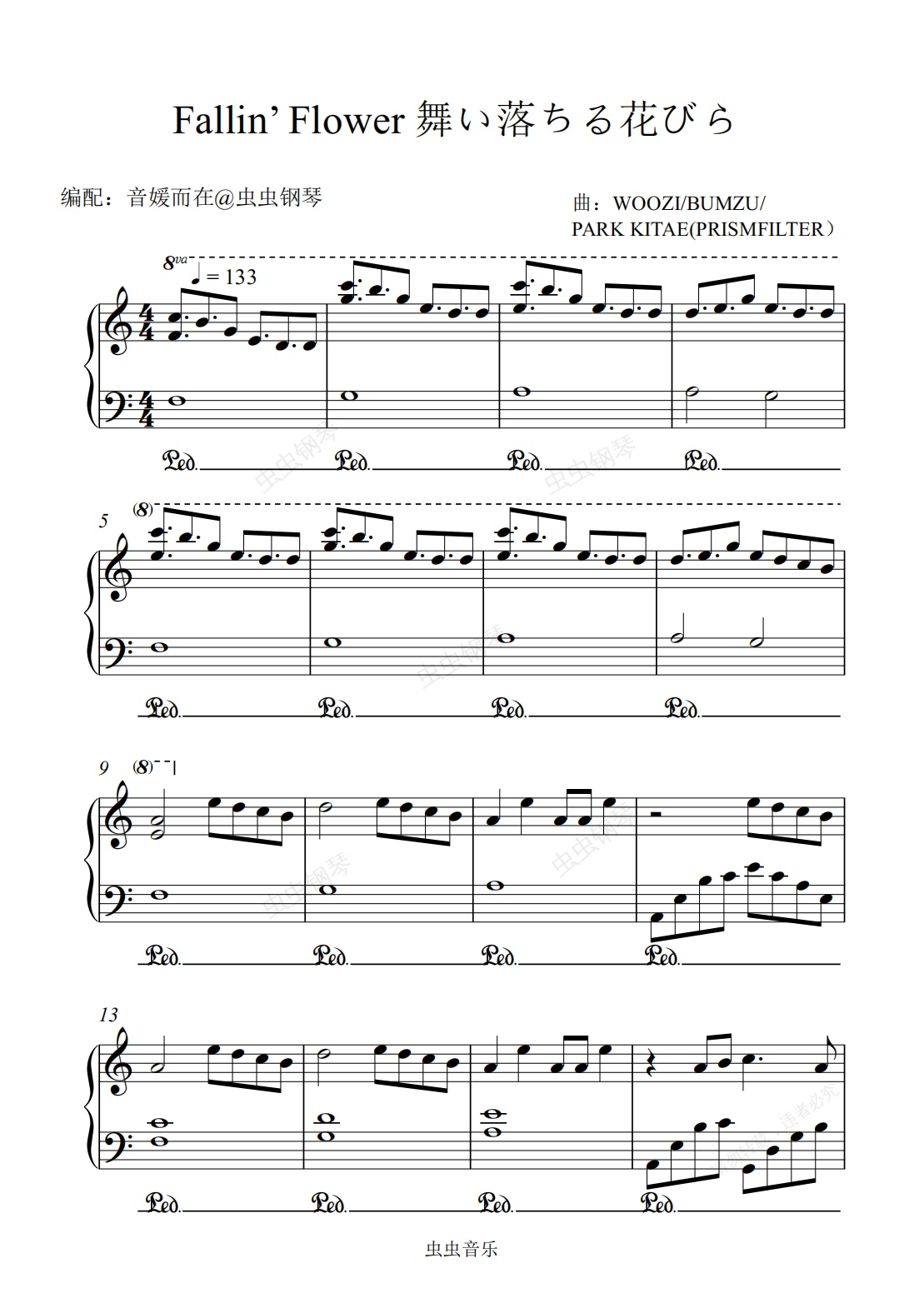 钢琴谱:舞い落ちる花びら Fallin’ Flower - 抒情演奏版