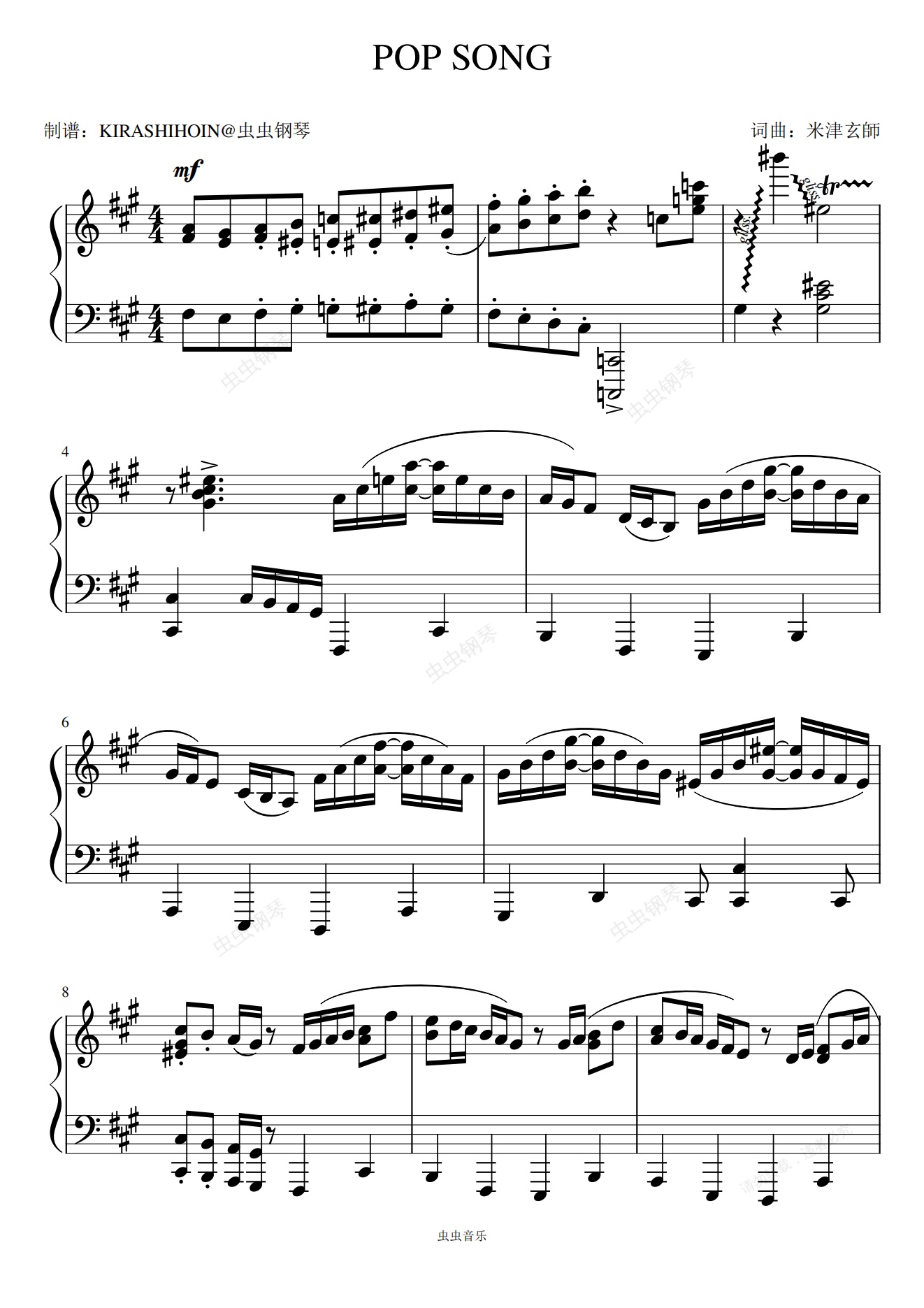 钢琴谱:POP SONG - 米津玄师