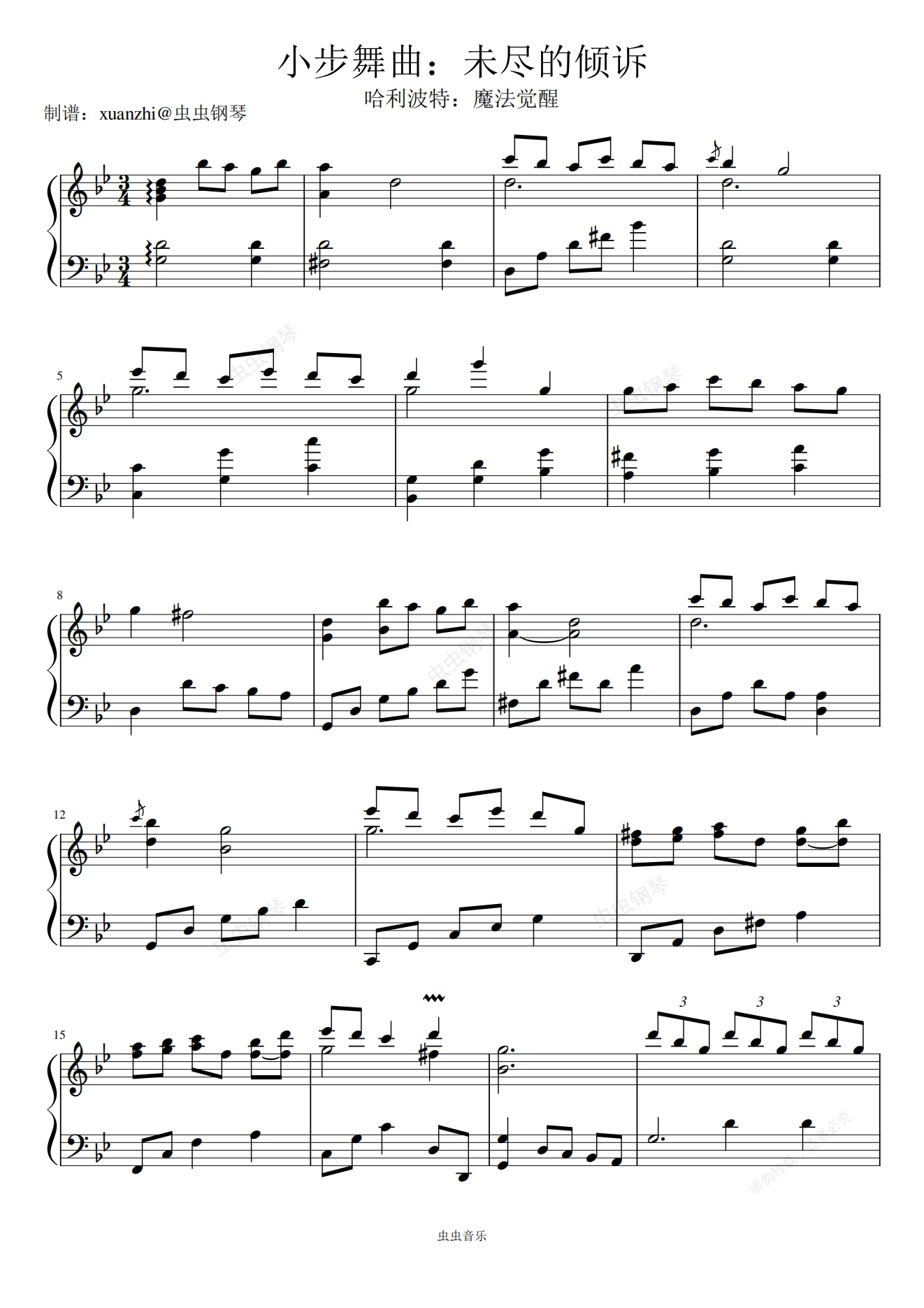 钢琴谱:未尽的倾诉 哈利波特:魔法觉醒