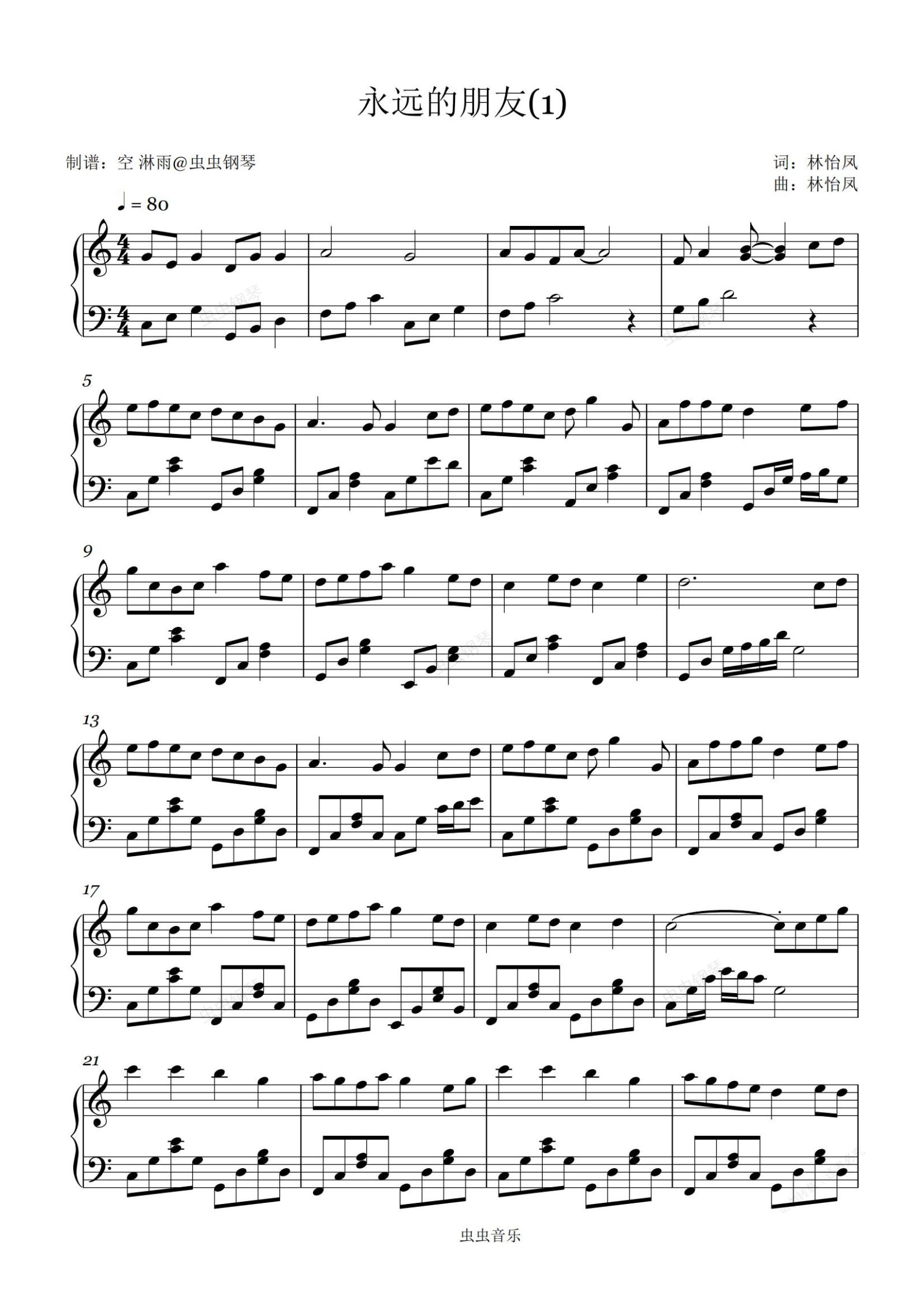钢琴谱:永远的朋友