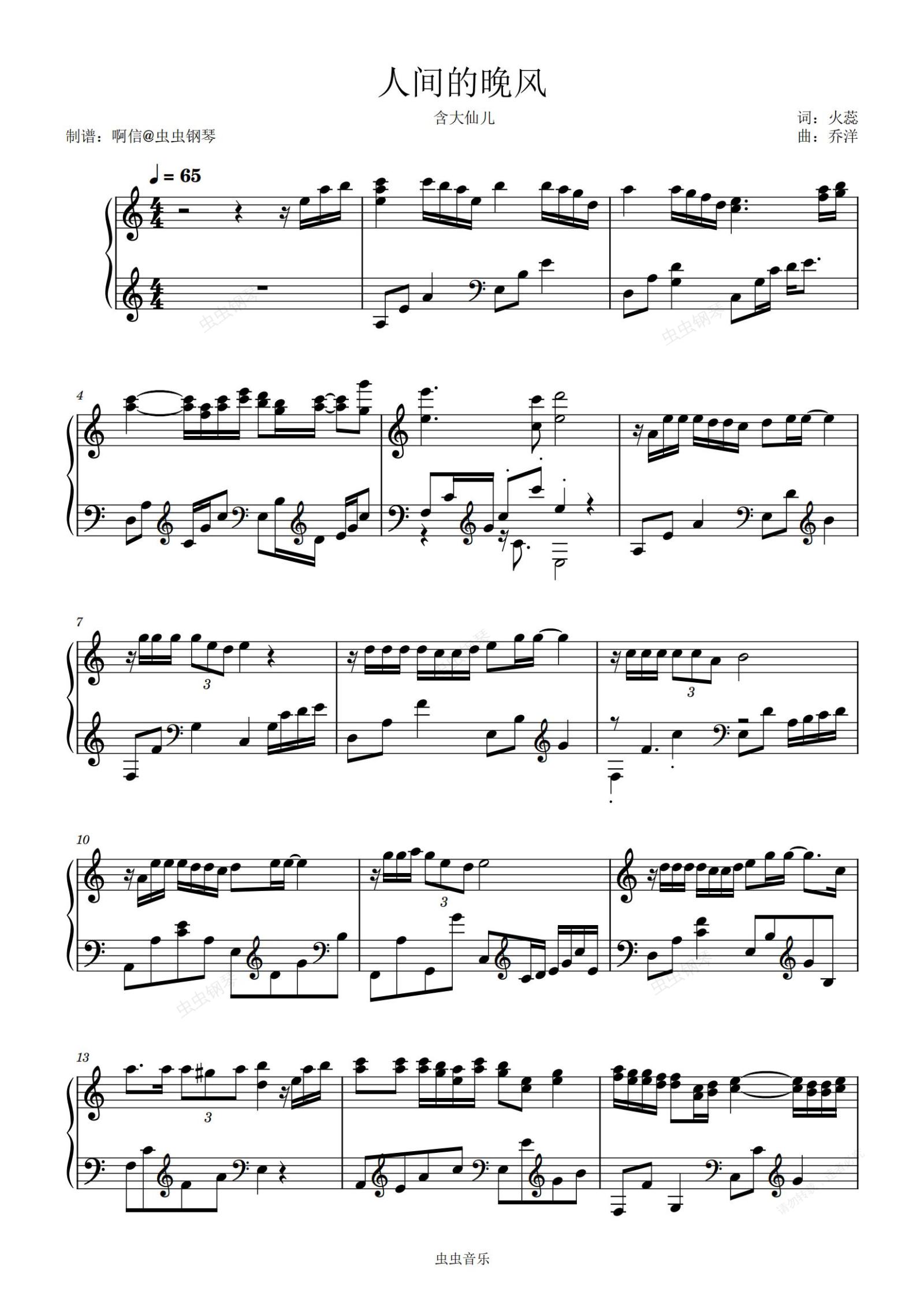 钢琴谱:人间的晚风-含大仙儿-C调啊信编配