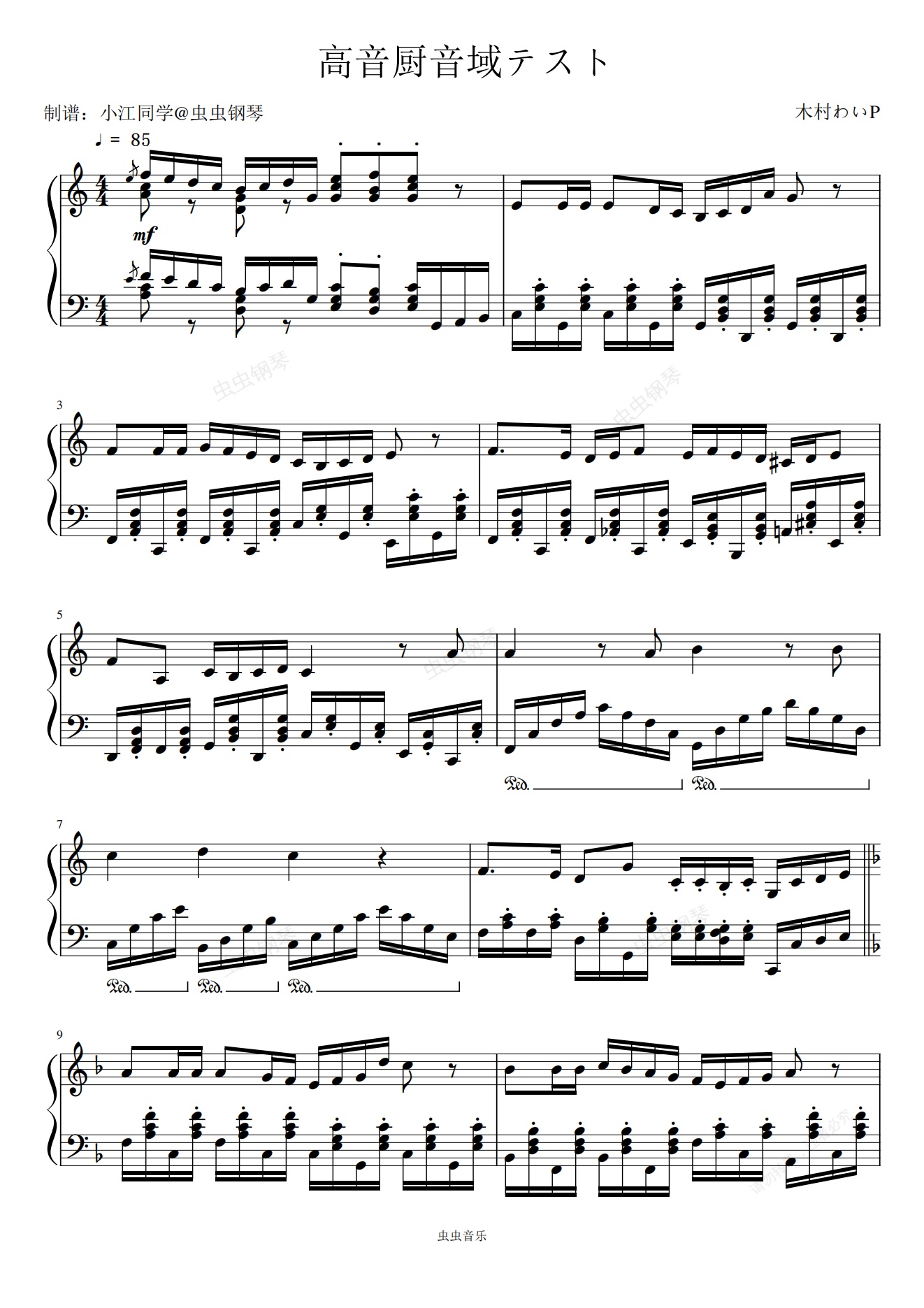钢琴谱:高音厨音域テスト 木村わいP