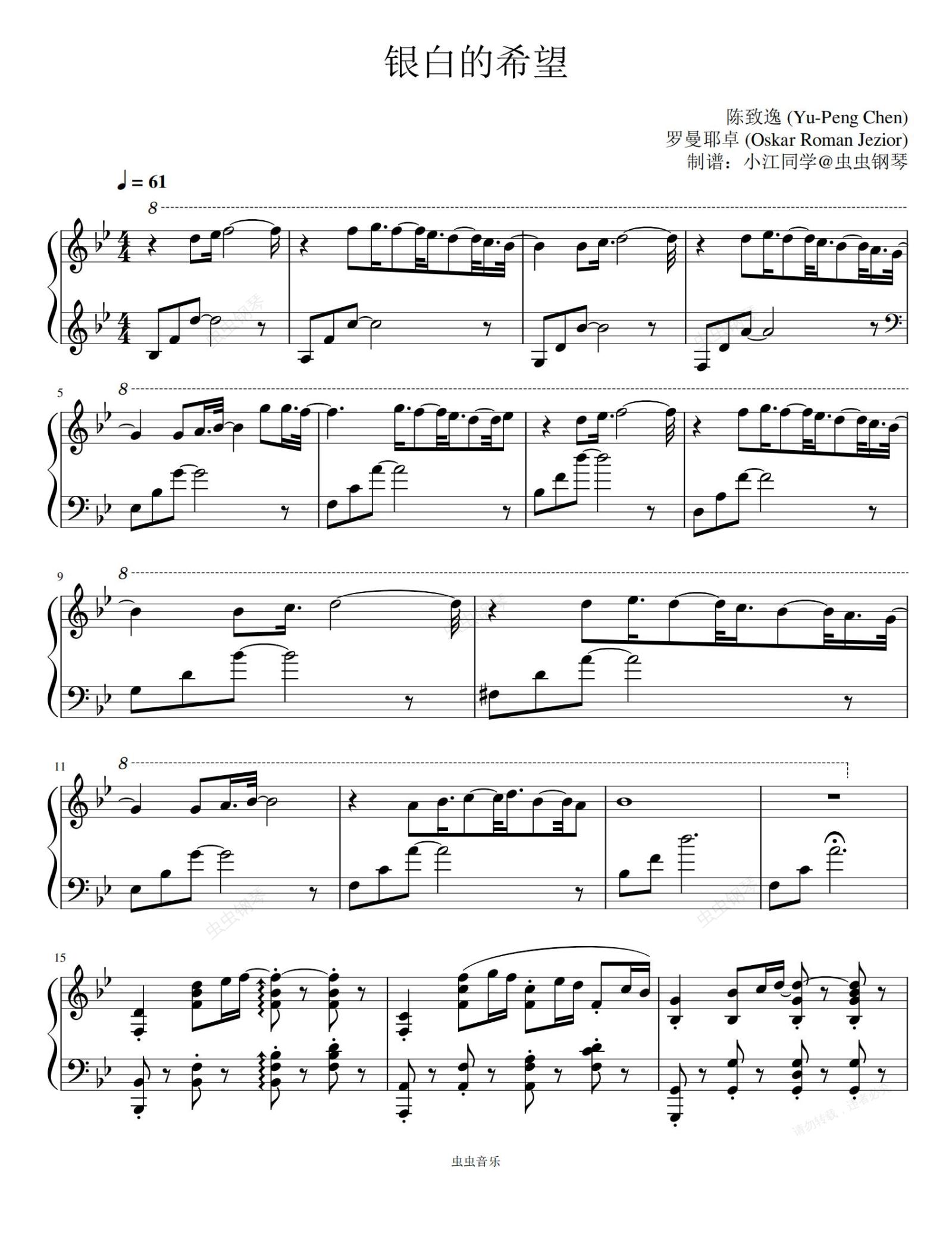 钢琴谱:银白的希望(Fragile Fantasy)罗曼耶卓