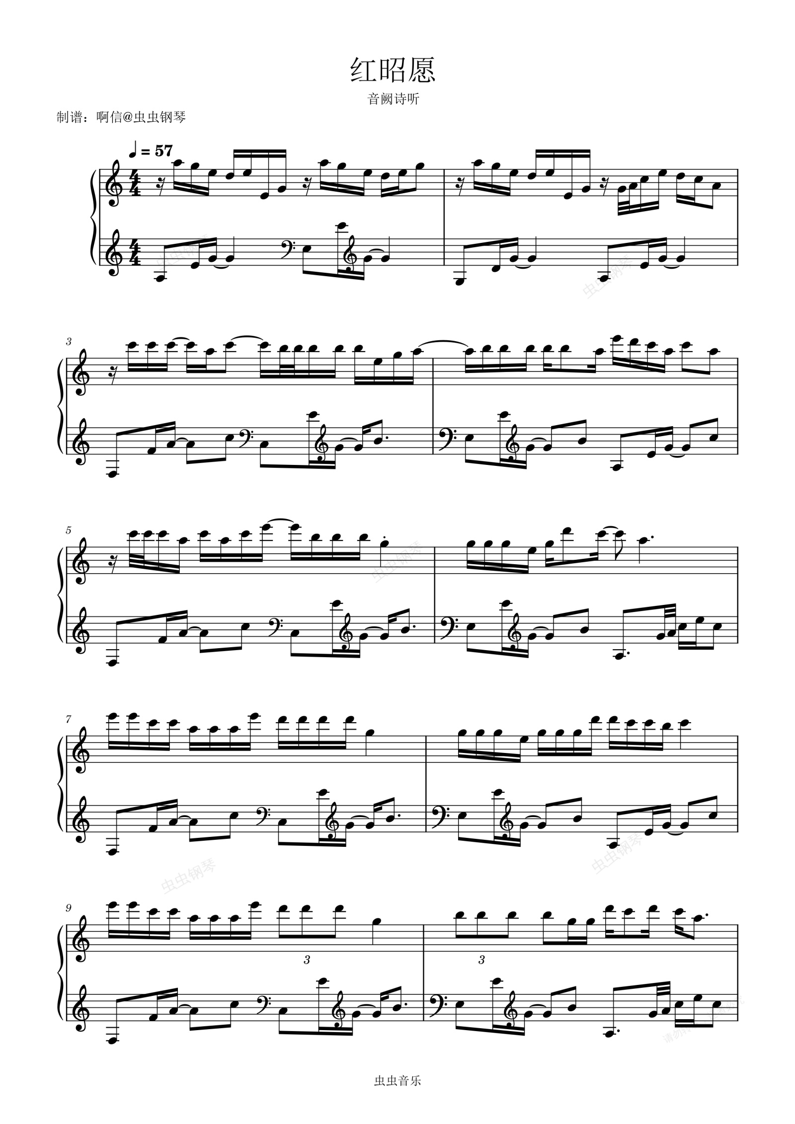 钢琴谱:红昭愿-音阙诗听-C调啊信编配
