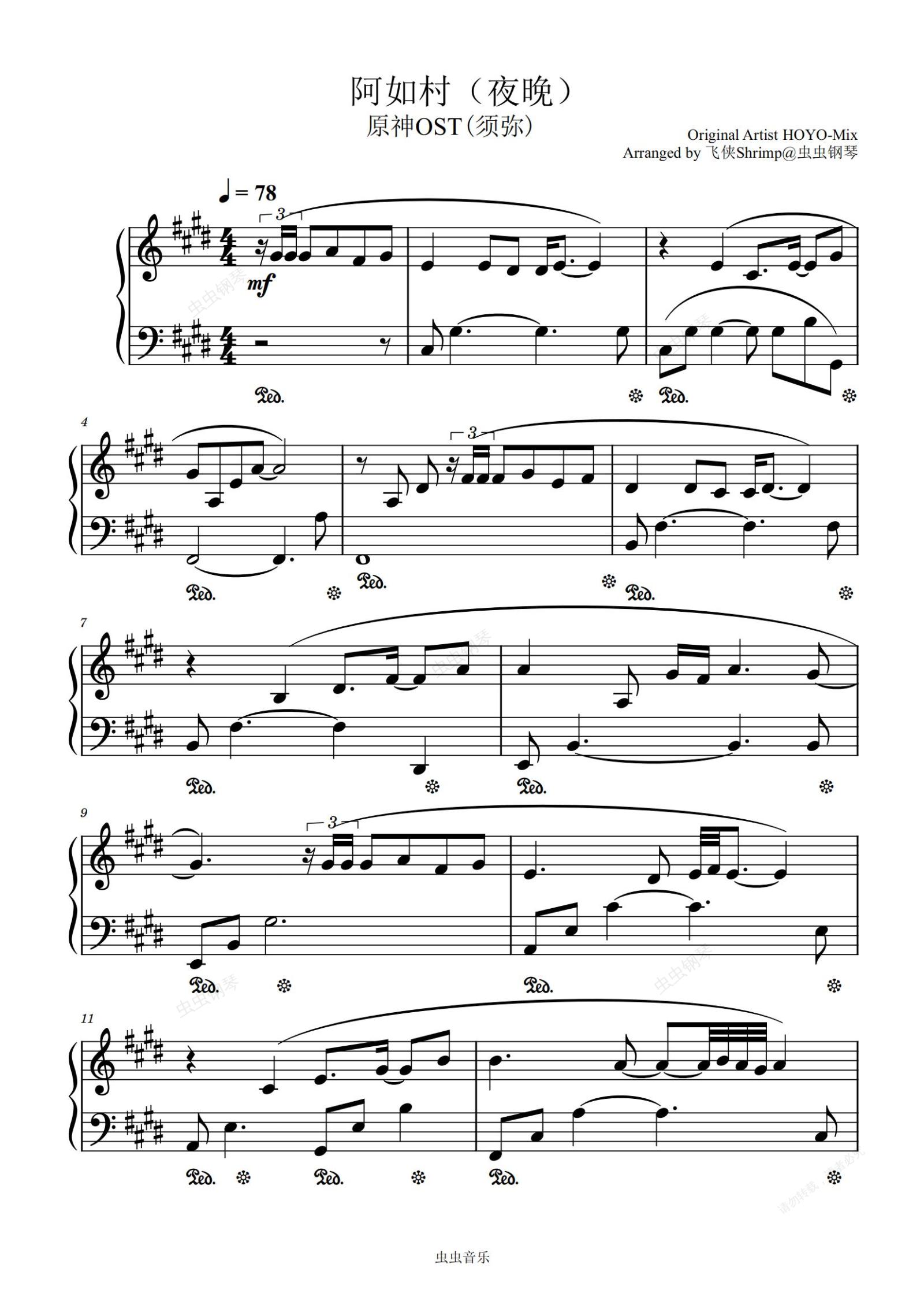 钢琴谱:【原神OST】阿如村夜晚 须弥背景音乐