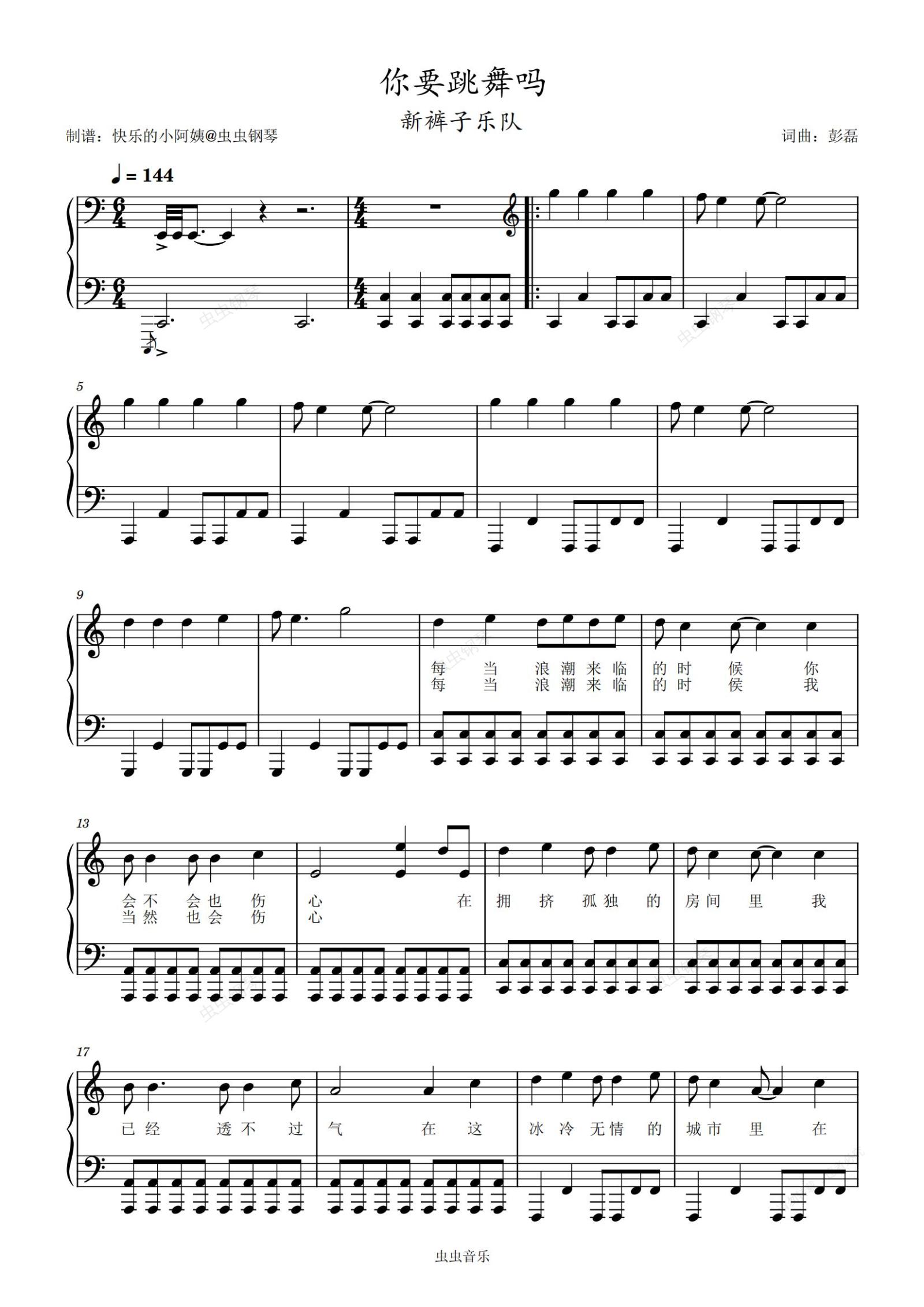 钢琴谱:你要跳舞吗(带歌词) - 新裤子乐队