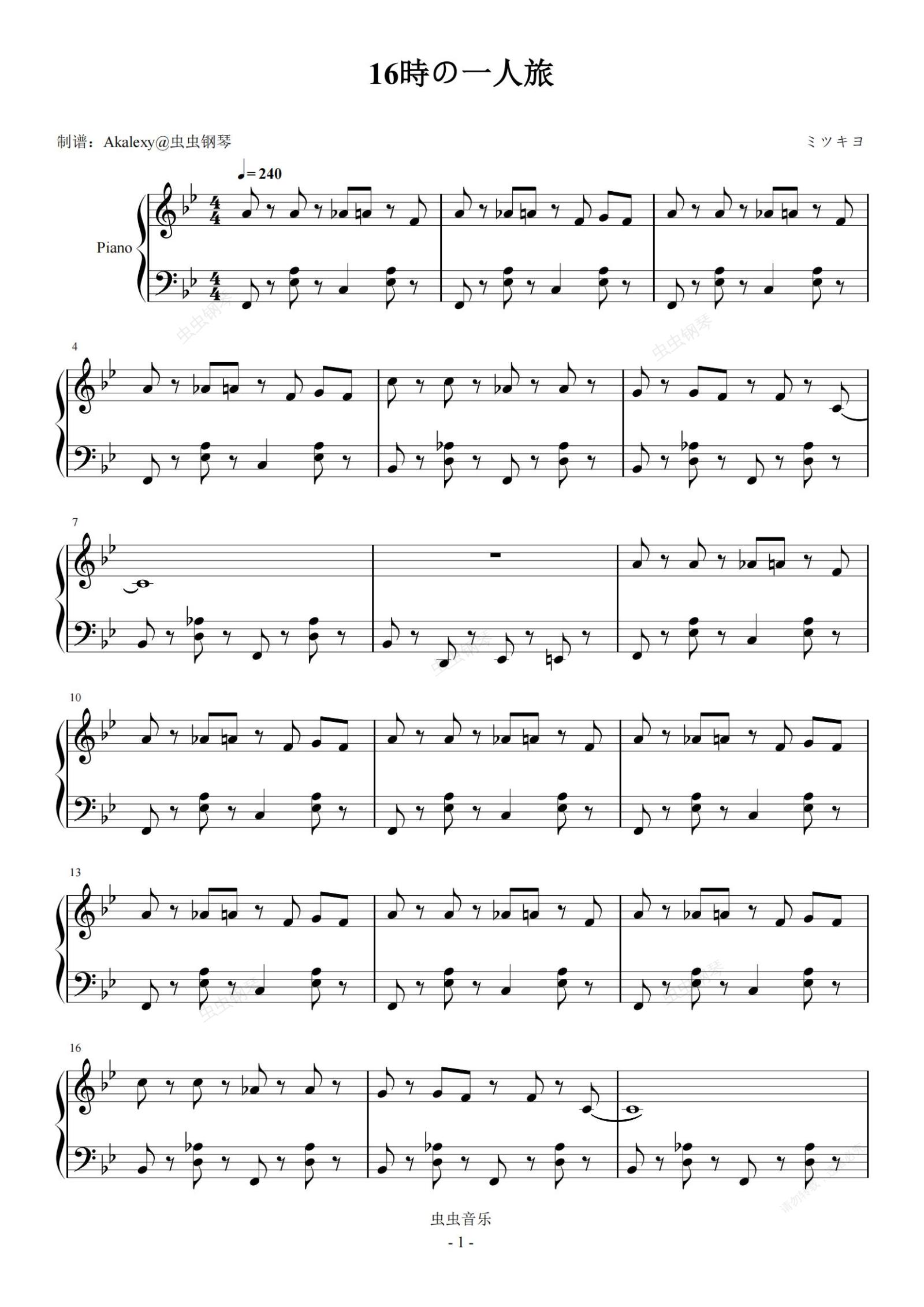 钢琴谱:16時の一人旅