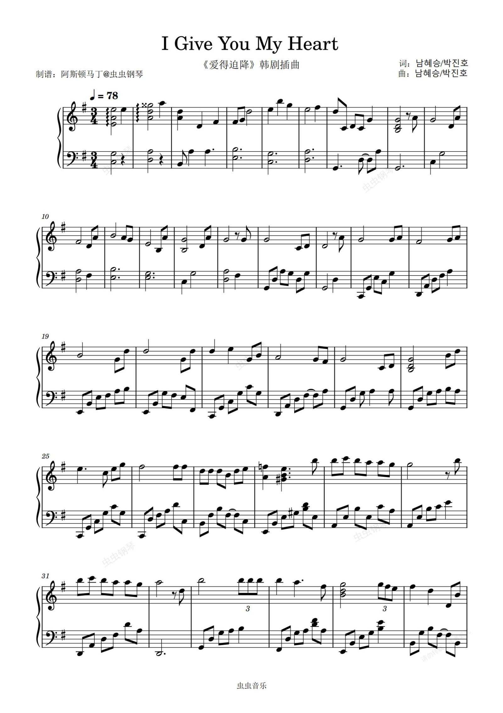 钢琴谱:爱的迫降插曲 - I Give You My Heart
