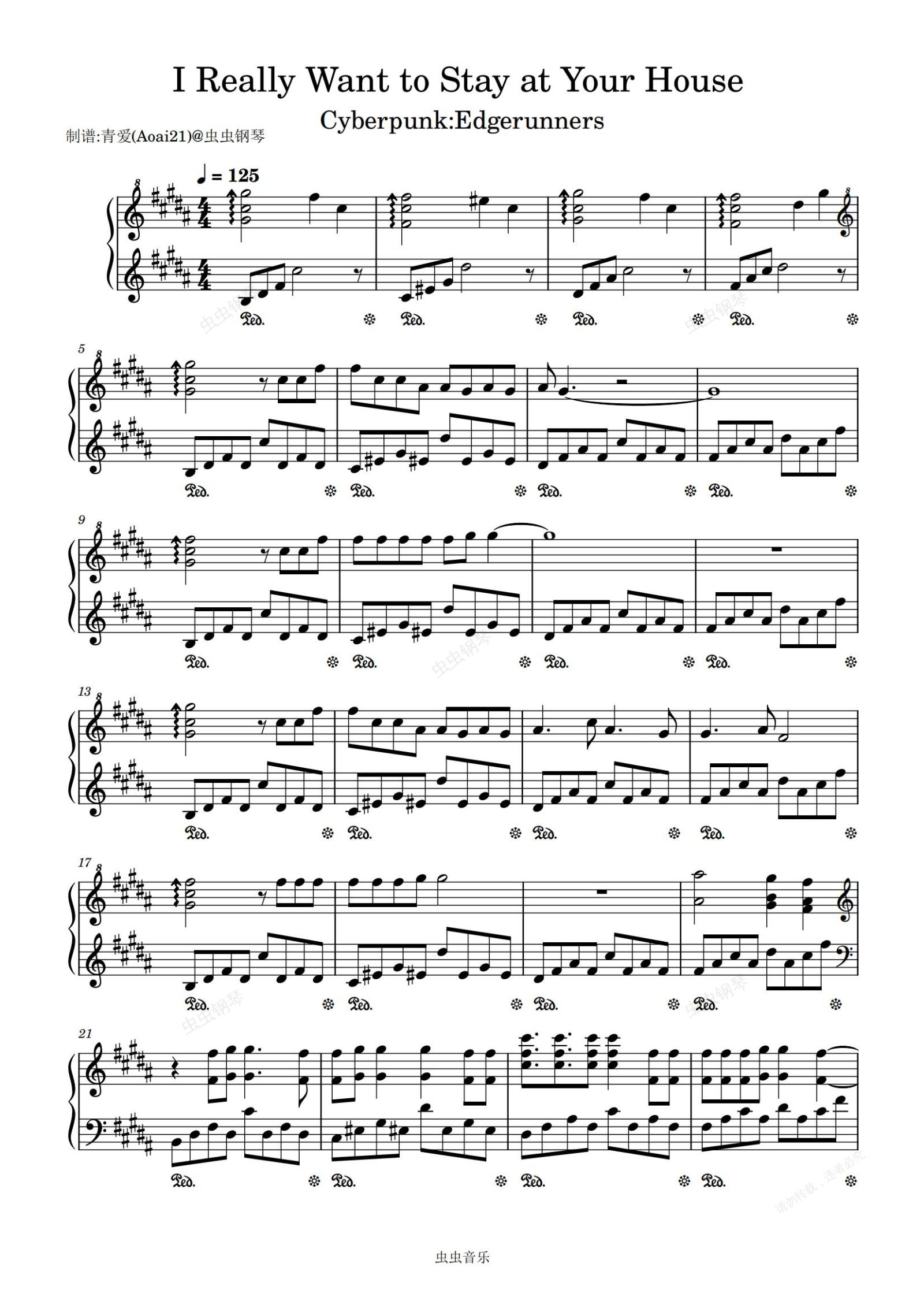 钢琴谱:【初级】I Really Want to Stay at Your House