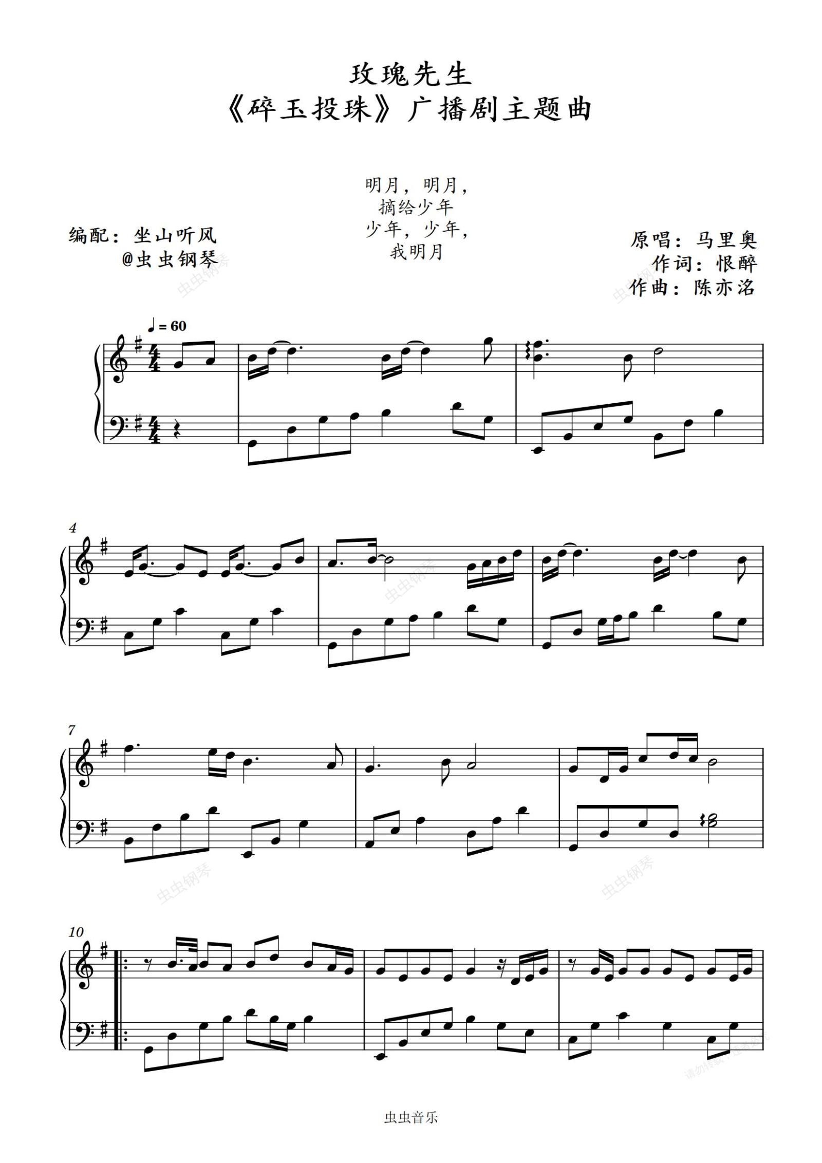 钢琴谱:玫瑰先生—— 《碎玉投珠》广播剧主题曲