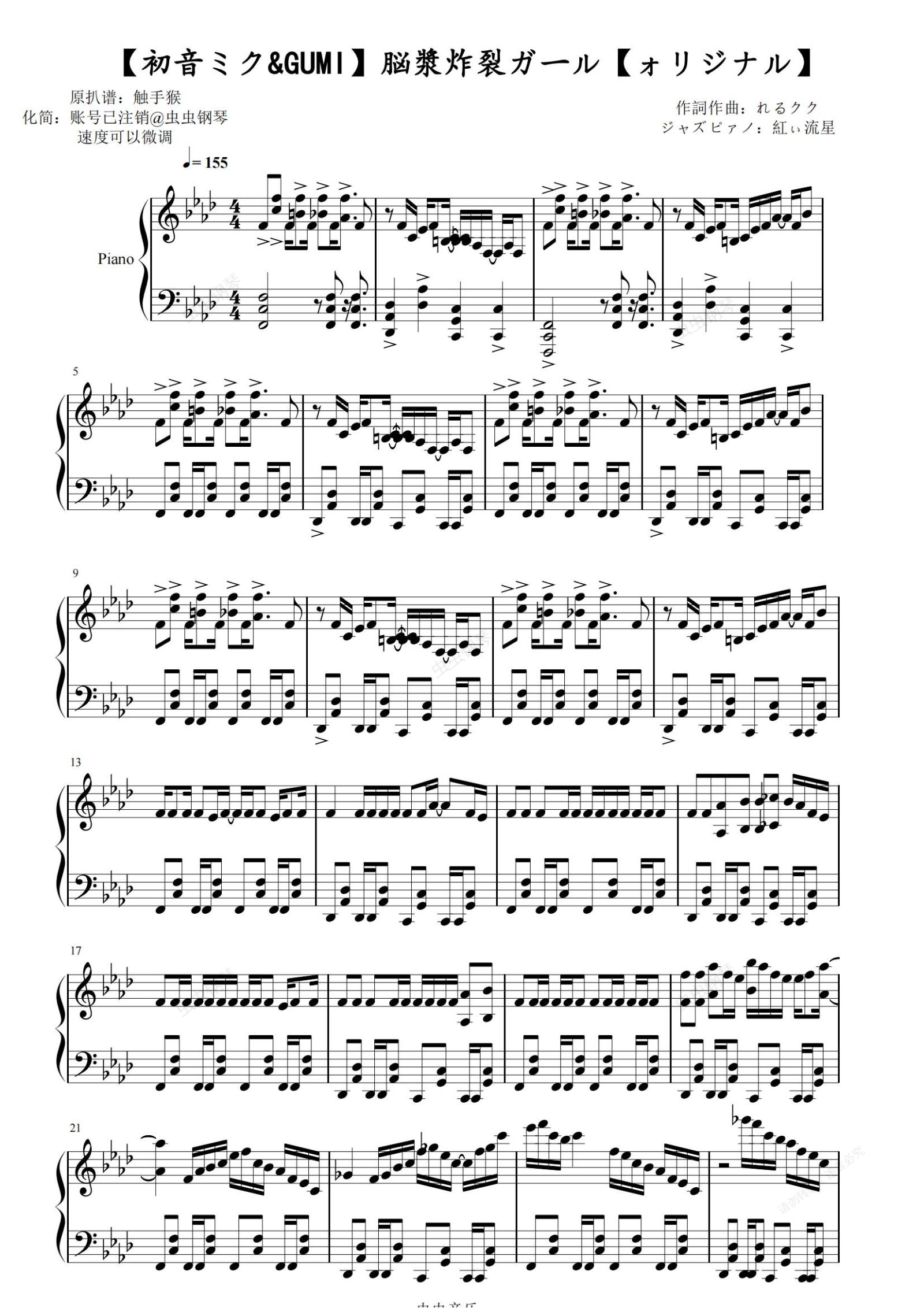 搬运触手猴制谱的,做了一点简化,主要简化了左手,右手持续的重复音是这首歌的精华,实在是难以简化,算是降低了一点点难度吧。第一次做谱,如有不佳,敬请谅解!