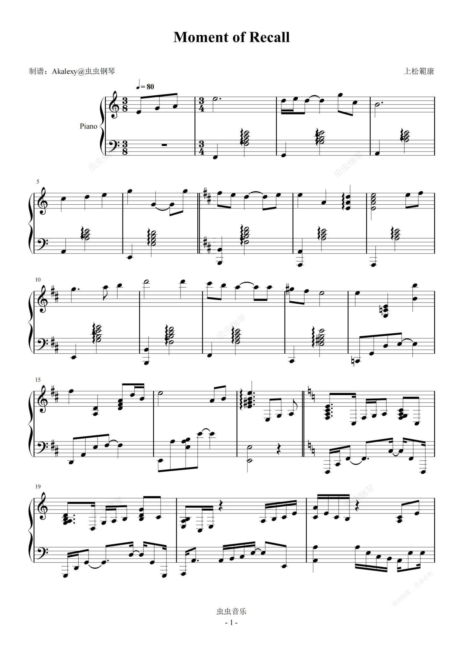 钢琴谱:Moment of Recall