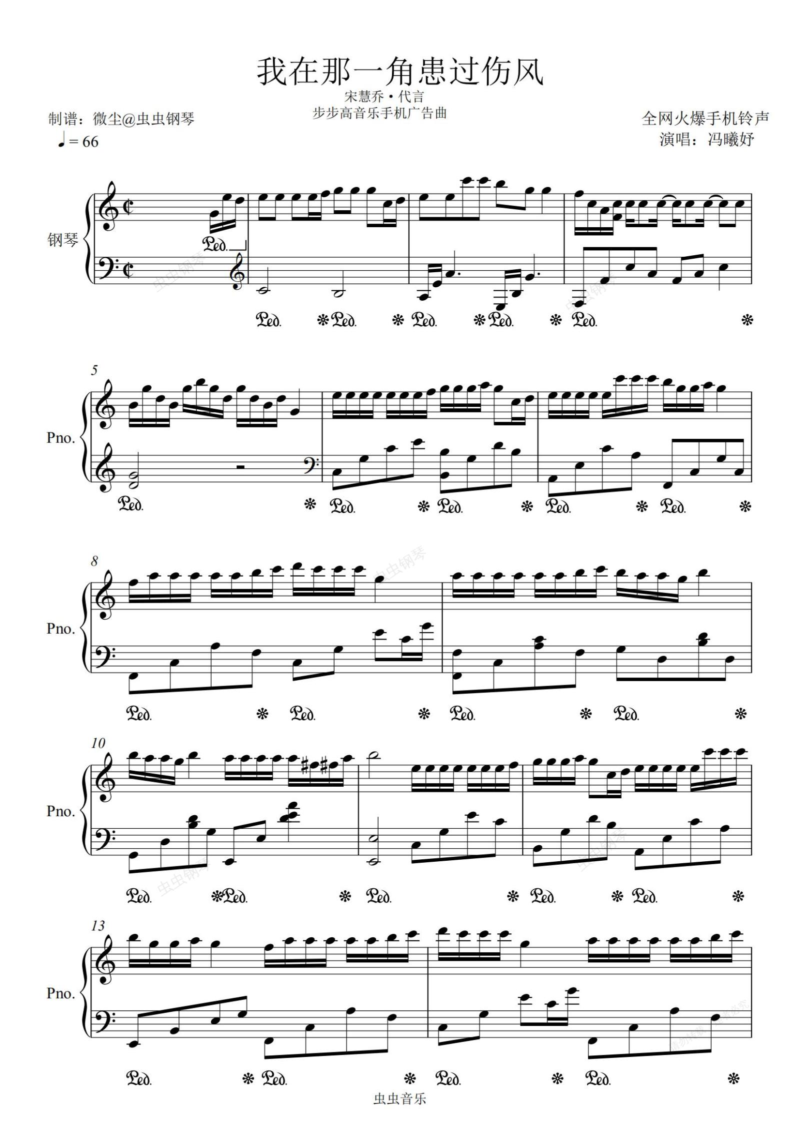 钢琴谱:我在那一角患过伤风·步步高音乐手机广告曲