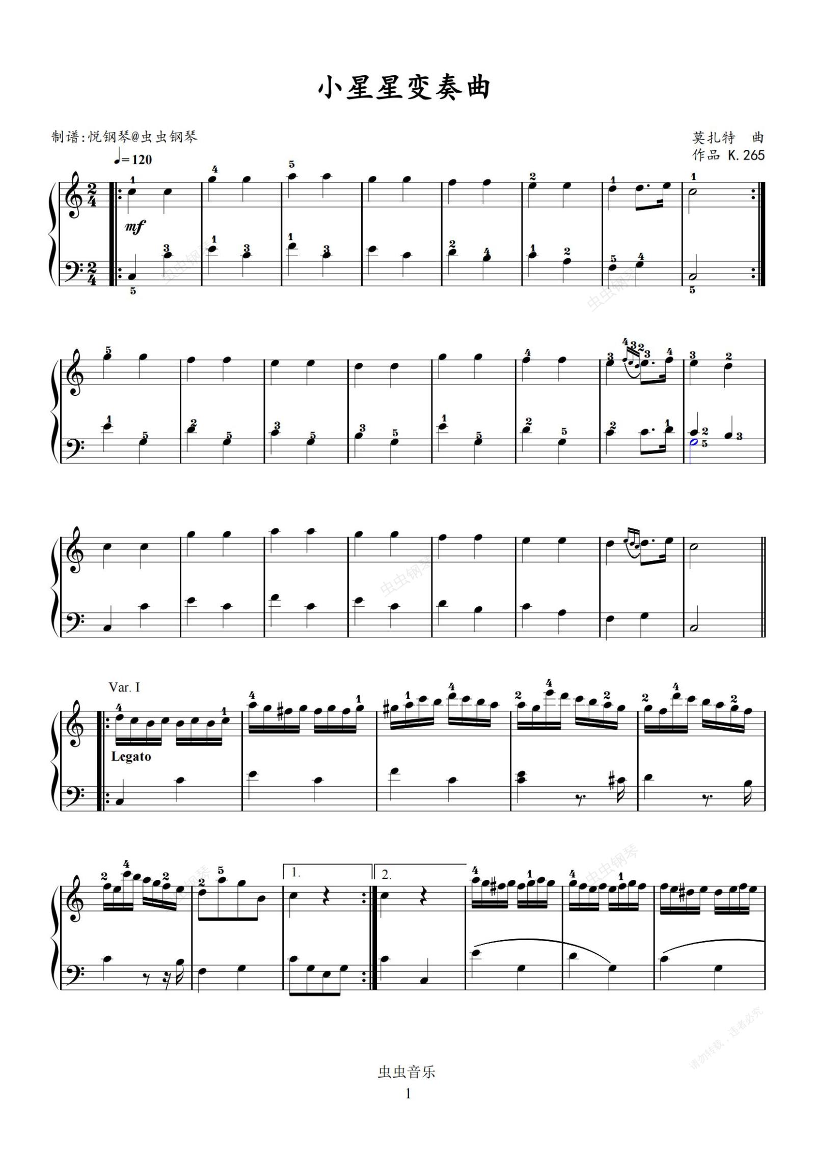 钢琴谱:小星星变奏曲 作品 K.265 莫扎特