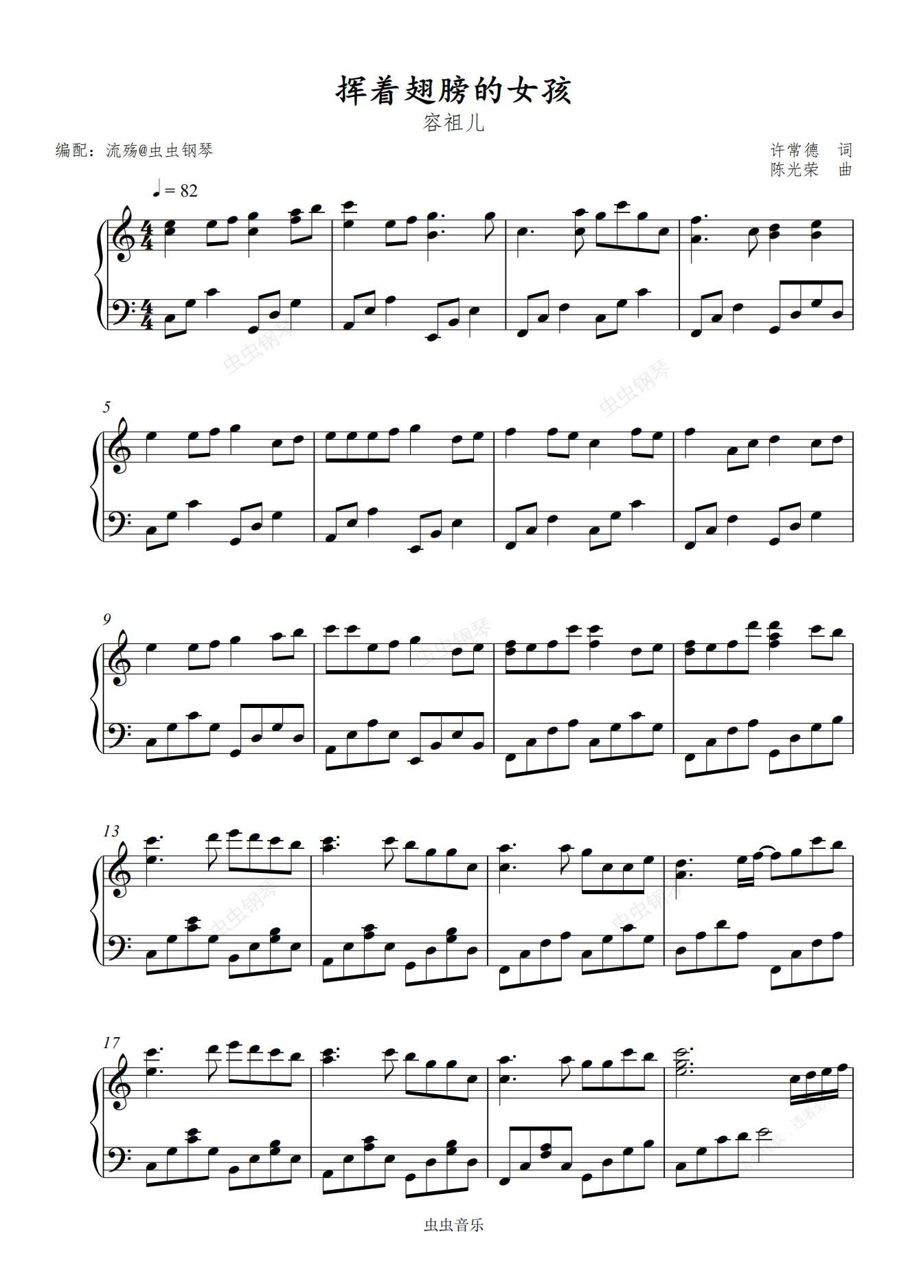 钢琴谱:挥着翅膀的女孩(C调版)