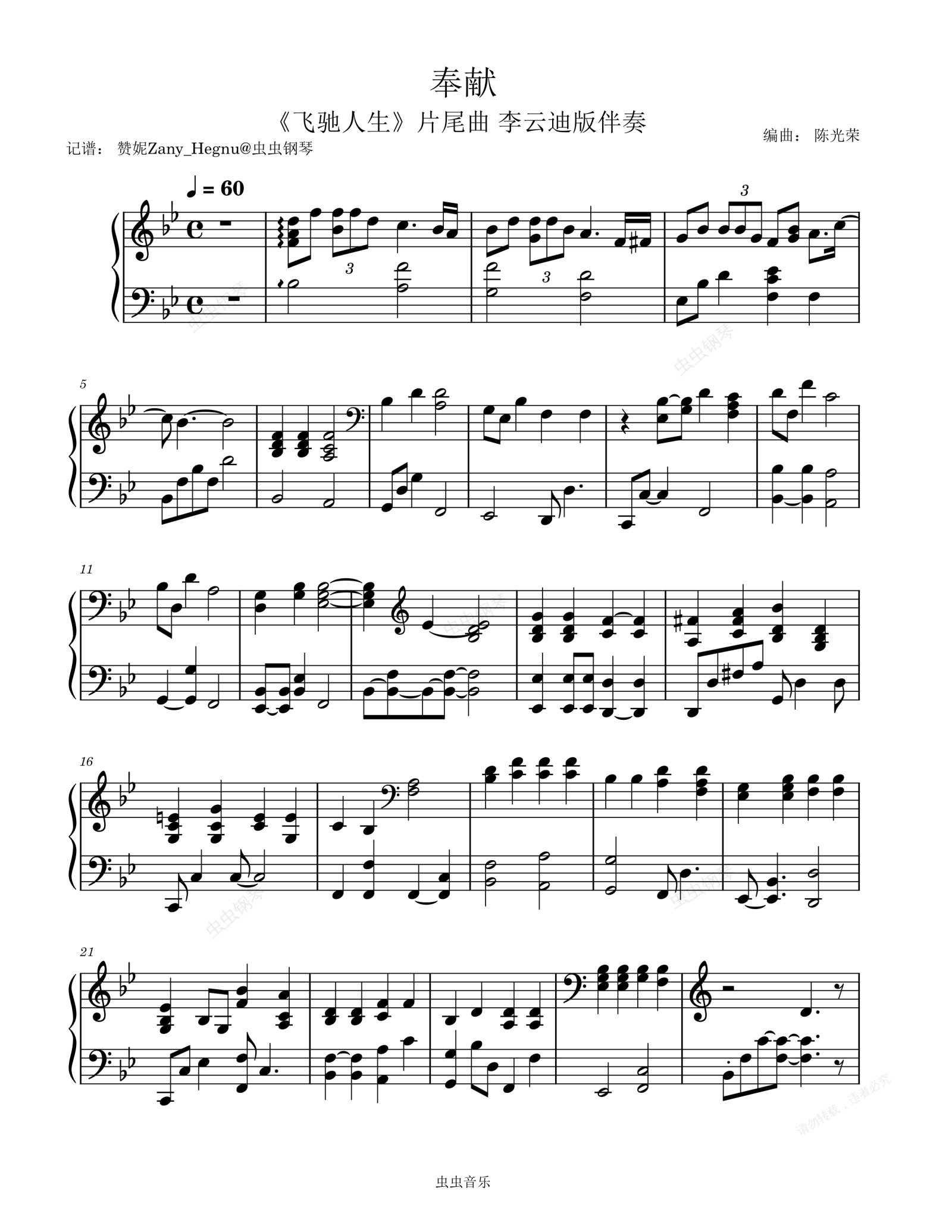 钢琴谱:奉献(《飞驰人生》片尾曲 李云迪独奏版)