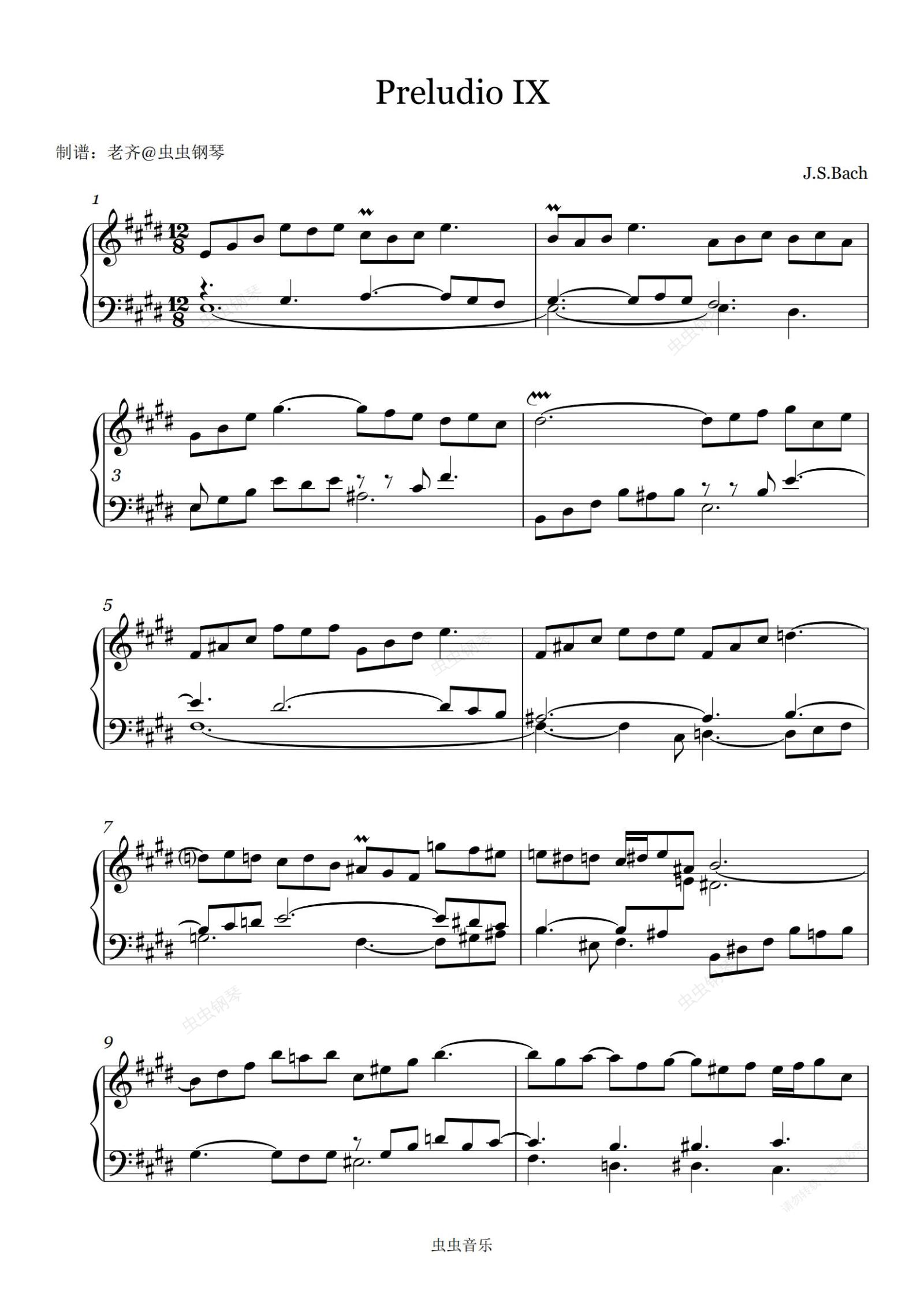 钢琴谱:【巴赫十二平均律】第一册 第九首 E大调 BWV854