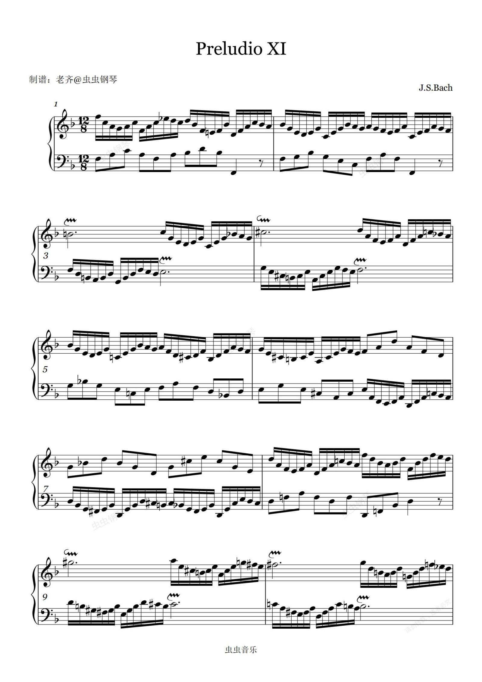 钢琴谱:【巴赫平均律】第一册第十一首F大调BWV856