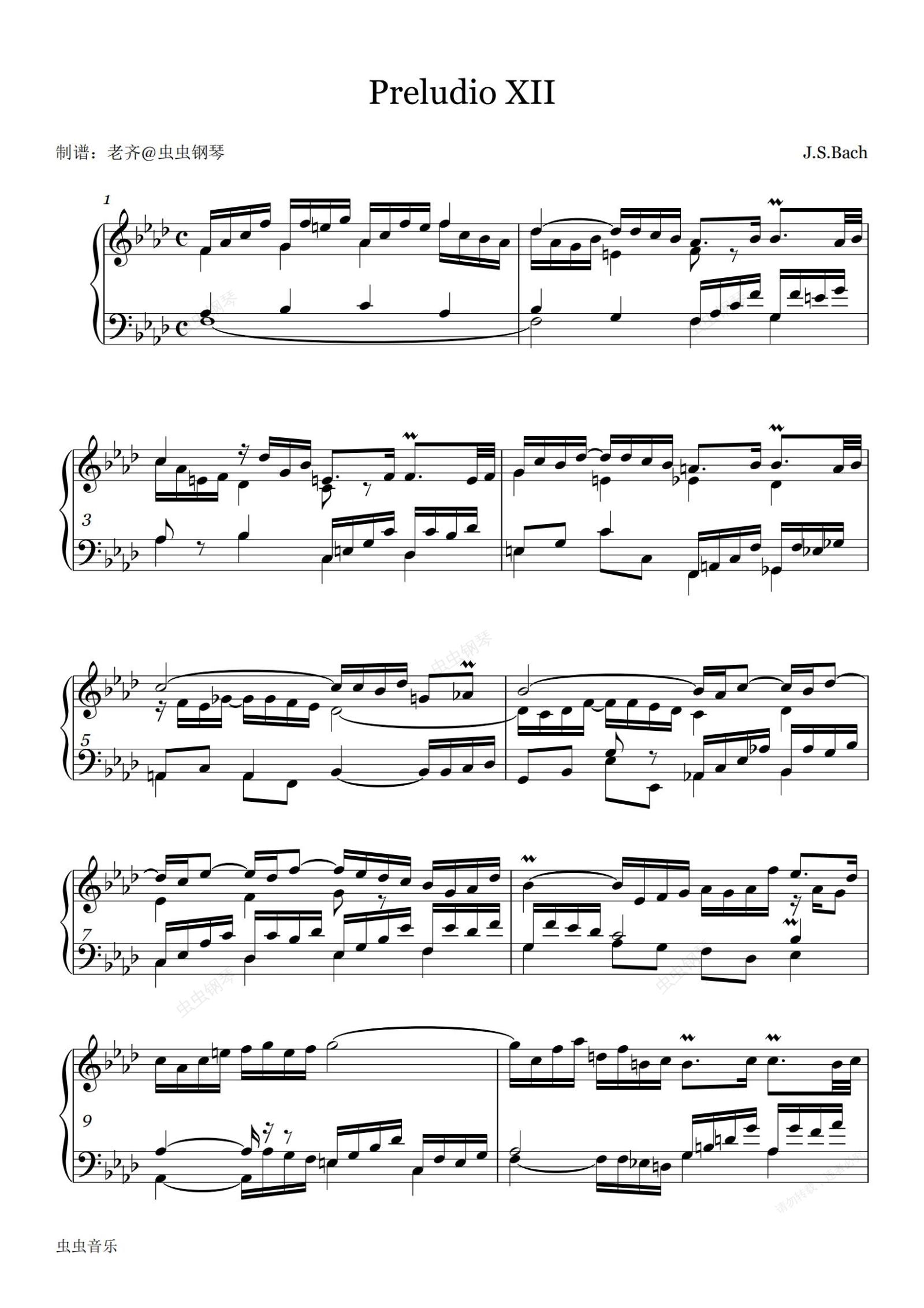 钢琴谱:【巴赫平均律】第一册第十二首F小调 BWV857