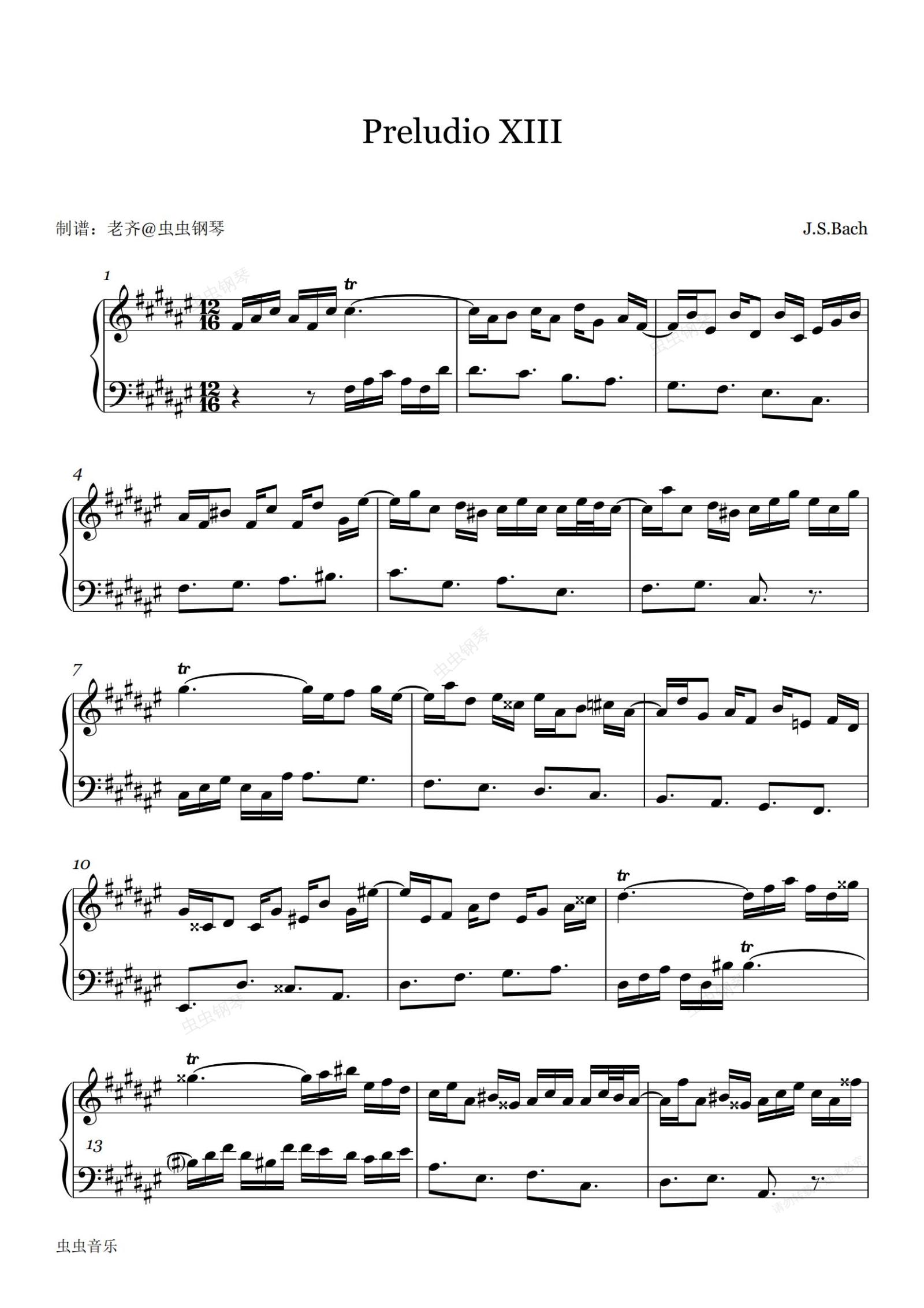 钢琴谱:【巴赫平均律】第一册第十三首升F大调BWV858