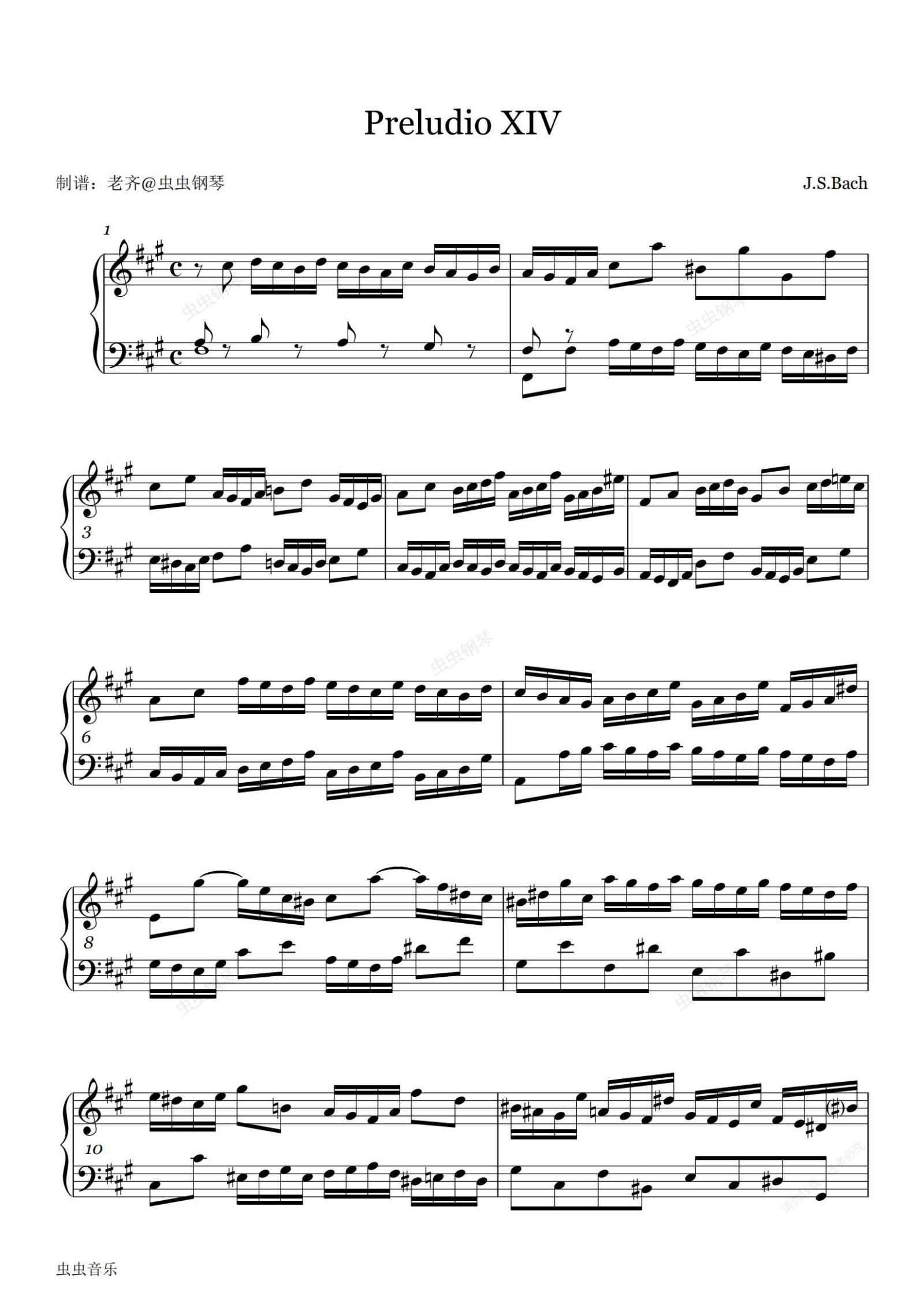 钢琴谱:【巴赫平均律】第一册第十四首升F小调BWV859