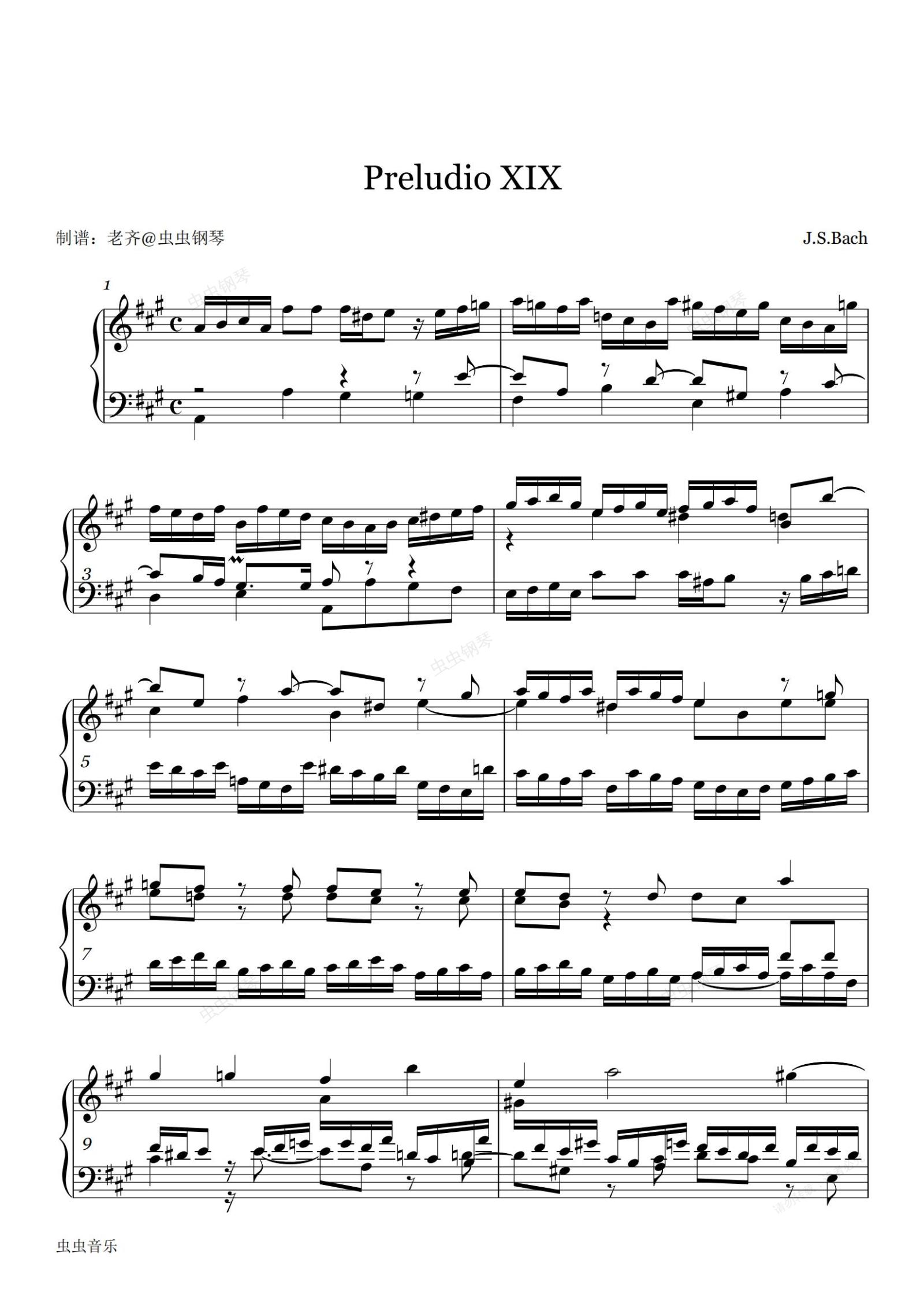 钢琴谱:【巴赫平均律】第一册第十九首A大调BWV864