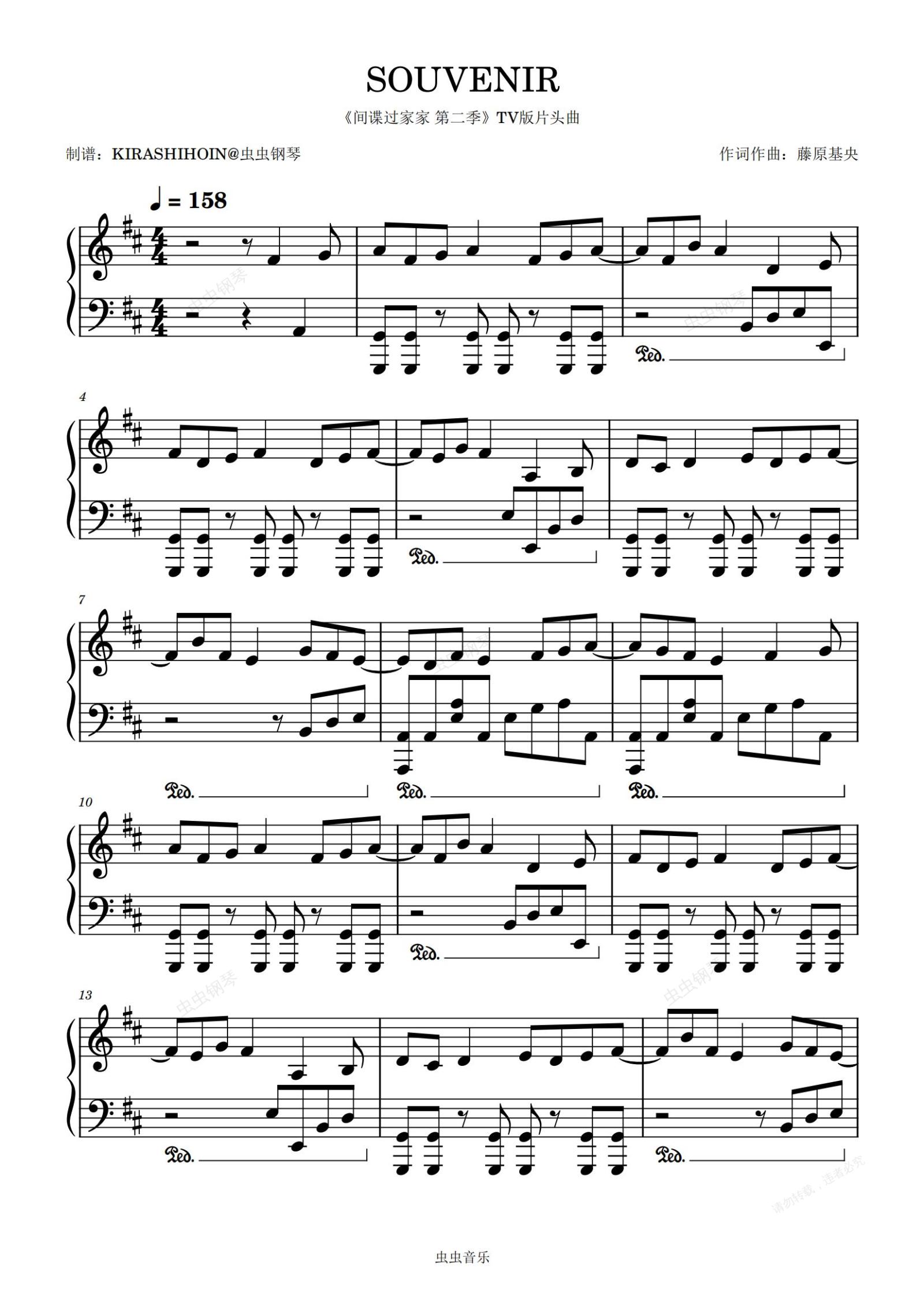 钢琴谱:SOUVENIR(《间谍过家家 第二季》TV版片头曲)- BUMP OF CHICKEN