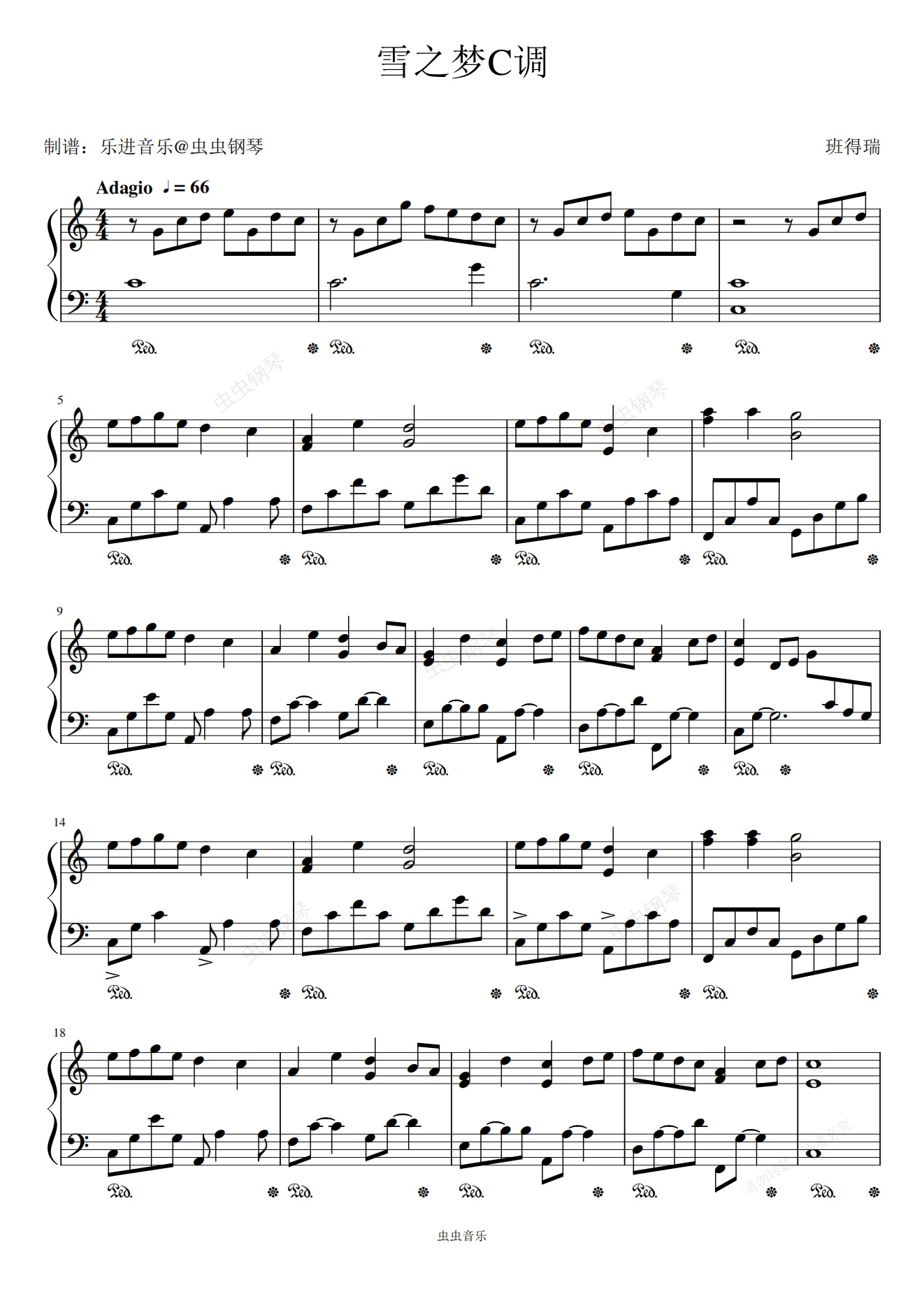 钢琴谱:C调简单易弹《雪之梦》(Snowdreams)