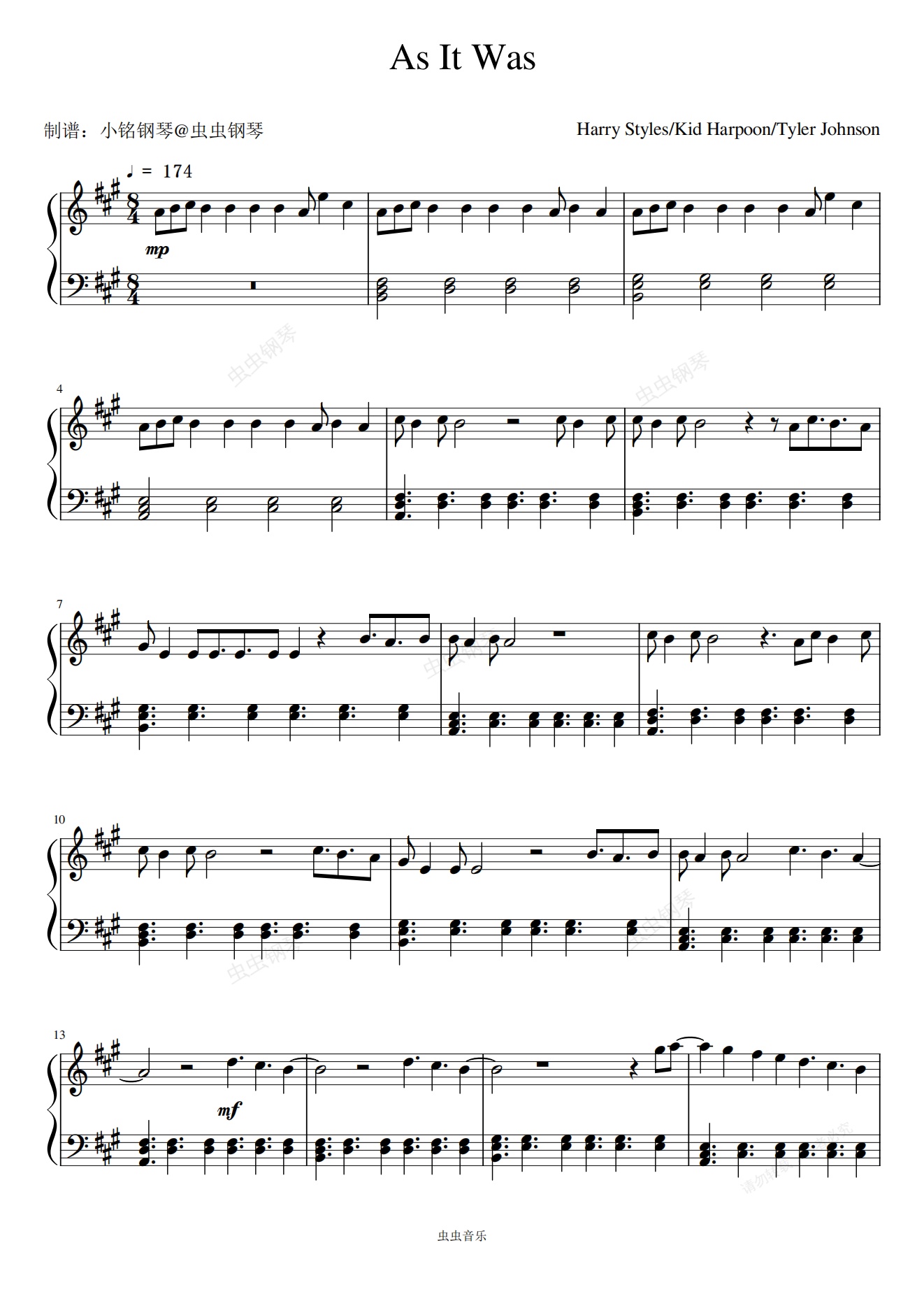 钢琴谱:As It Was - Harry Styles (哈里·斯泰尔斯)