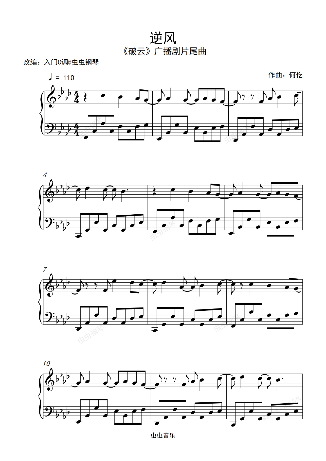 钢琴谱:《逆风》(《破云》广播剧片尾曲)马里奥演唱原调版