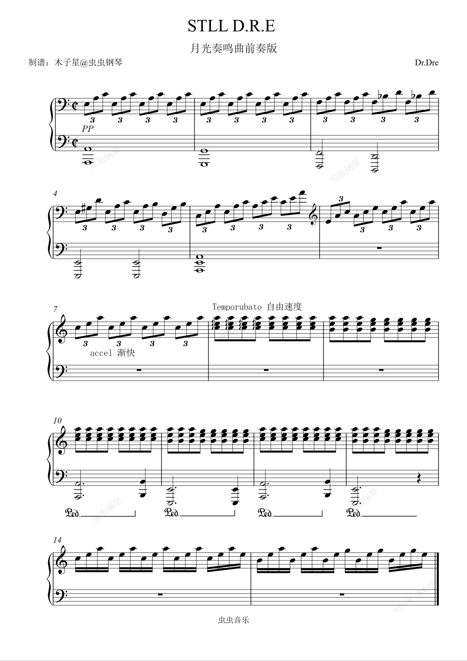 钢琴谱:Still D.R.E月光曲前奏版