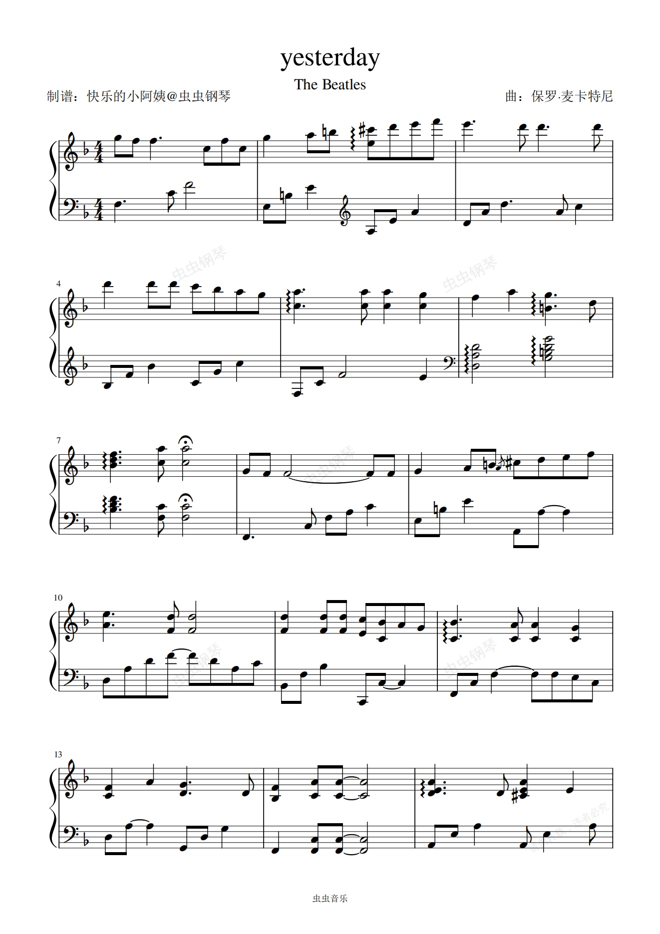钢琴谱:Yesterday (The Beatles)保罗·麦卡特尼