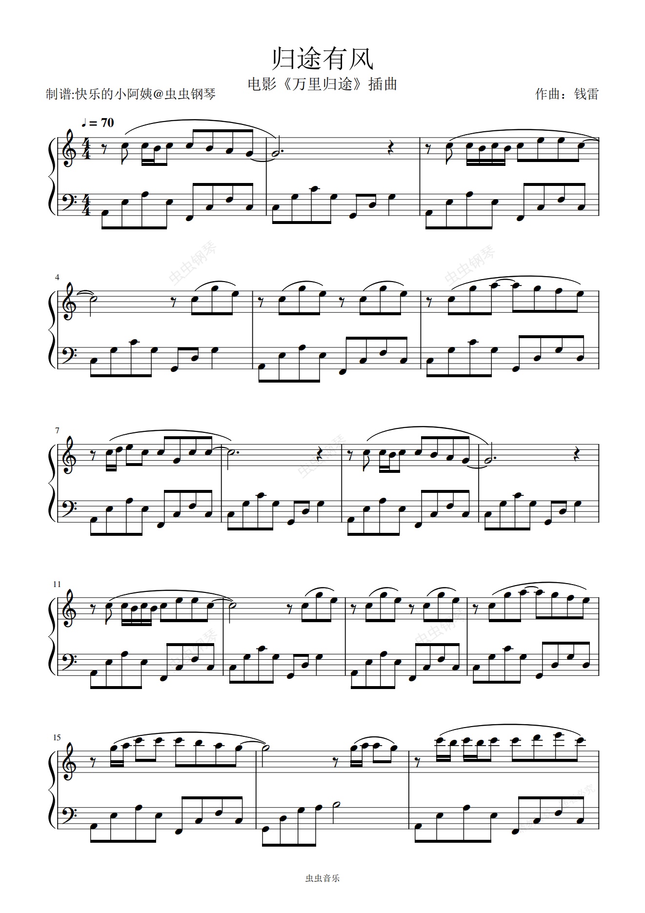 钢琴谱:归途有风-王菲-简易版电影《万里归途》主题曲
