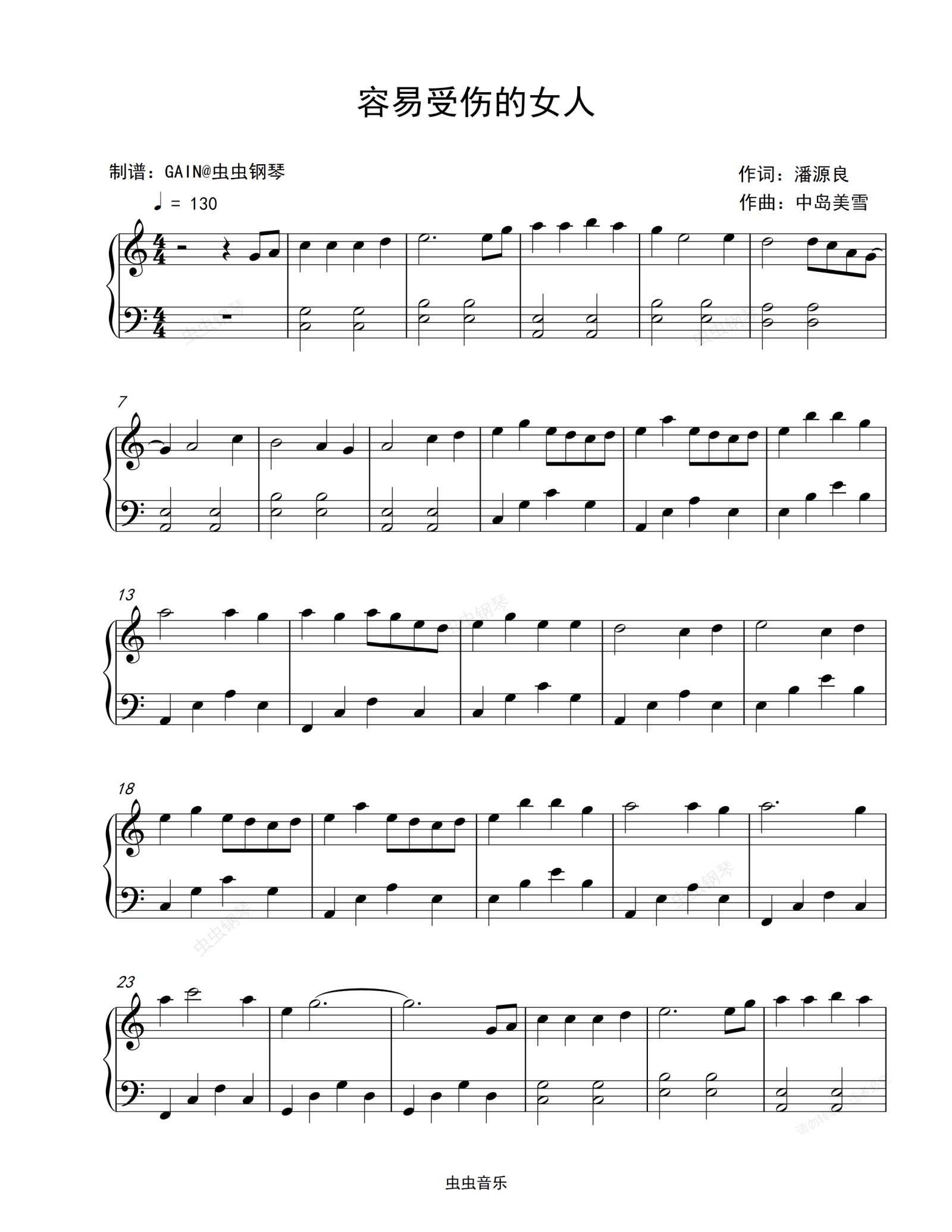 钢琴谱:容易受伤的女人-王菲-简单版