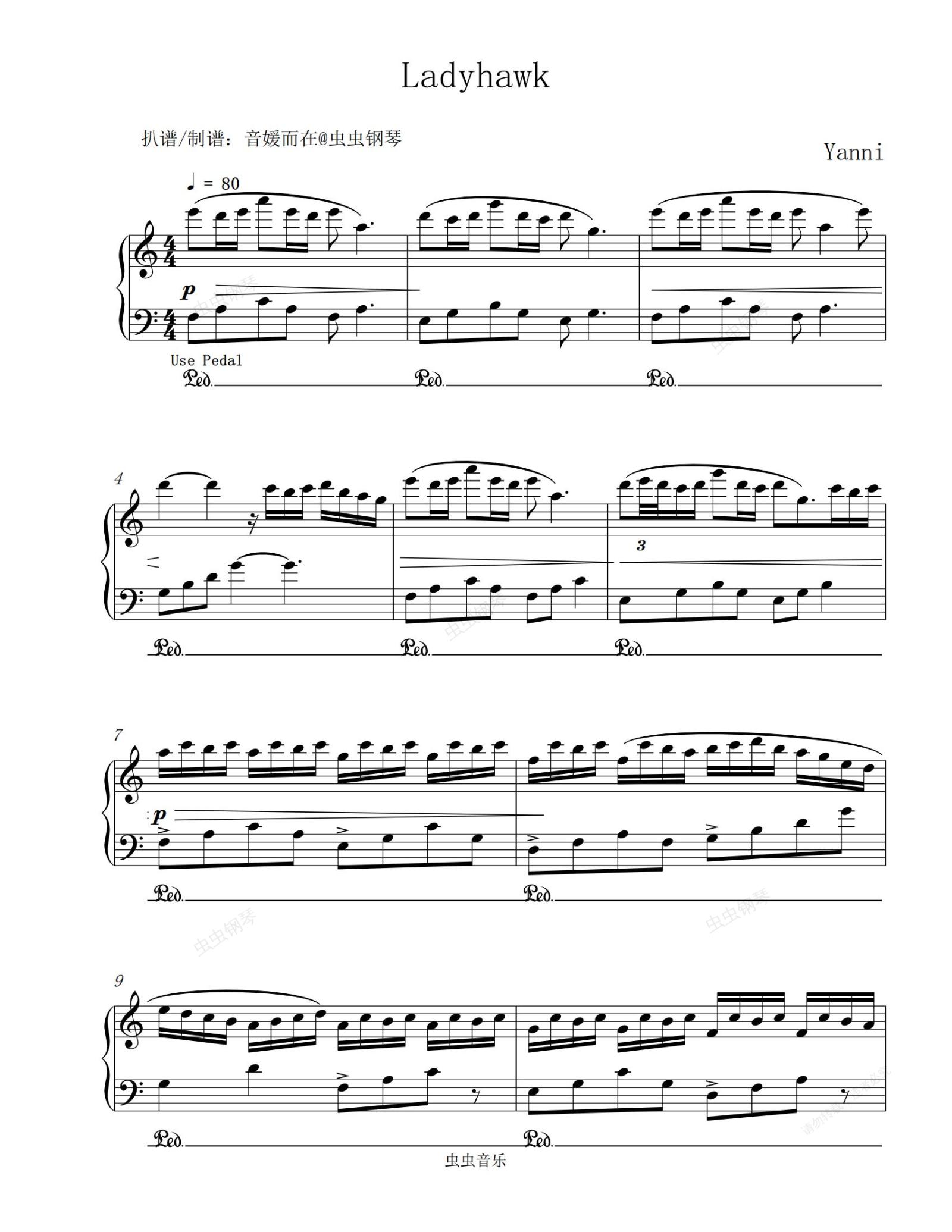 钢琴谱:雅尼(yanni) “Ladyhawk's 【钢琴轻音乐 | 舒缓音乐】