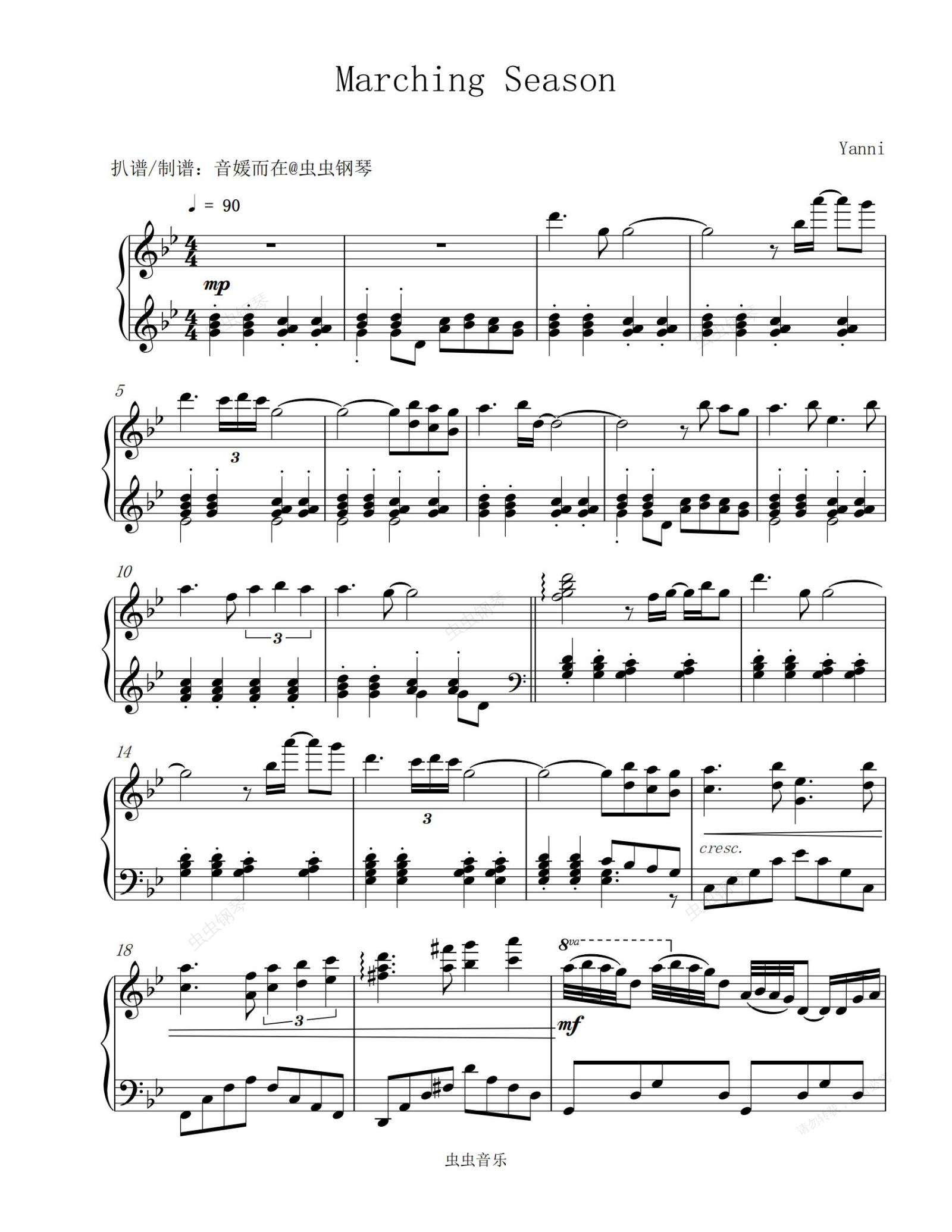 钢琴谱:Marching Season - Yanni 【钢琴轻音乐 | 舒缓音乐】
