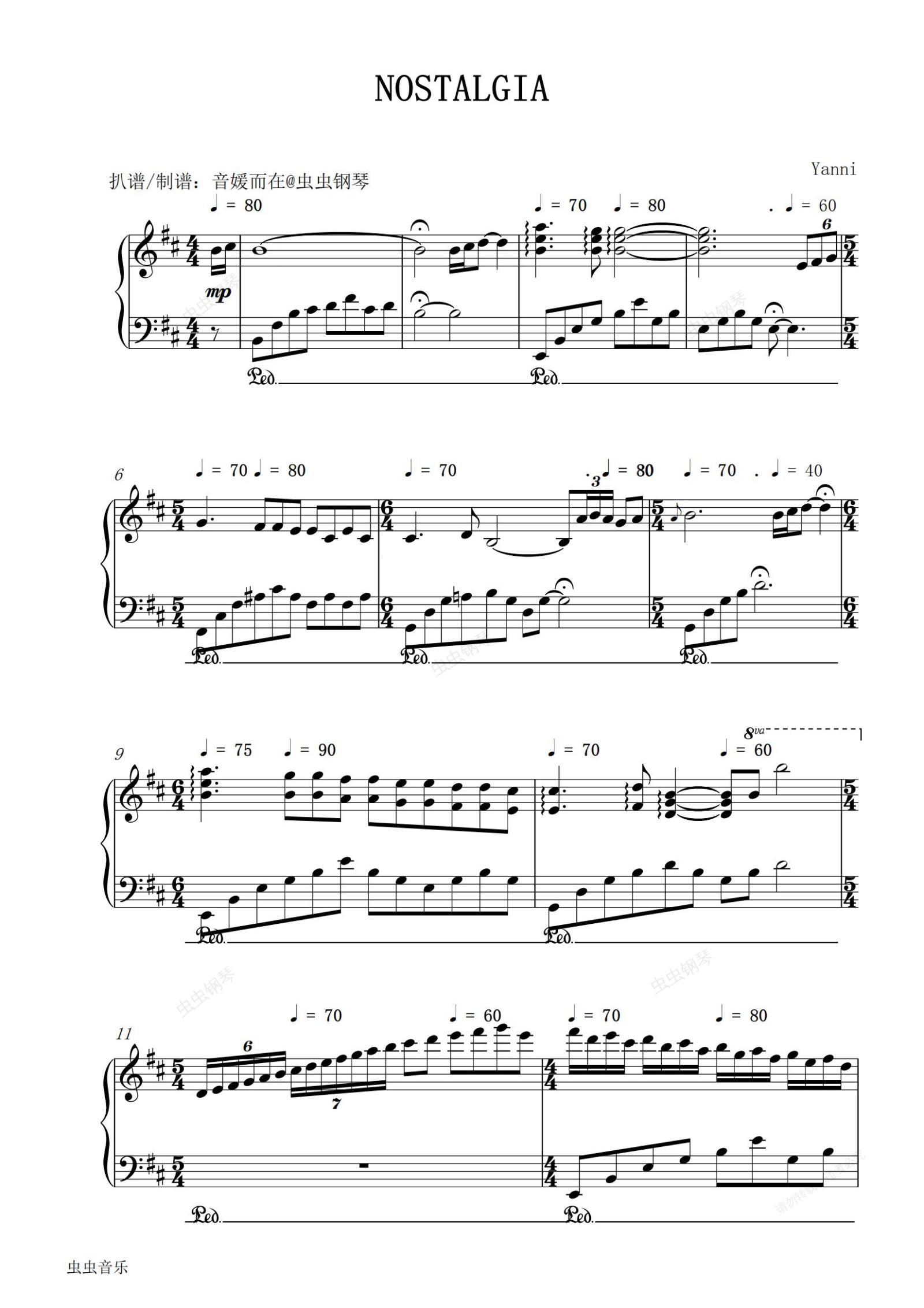 钢琴谱:Nostalgia 雅尼 Yanni【钢琴轻音乐 | 舒缓音乐】