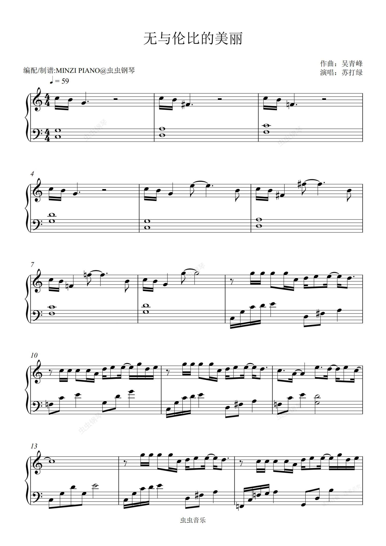 钢琴谱:无与伦比的美丽-苏打绿
