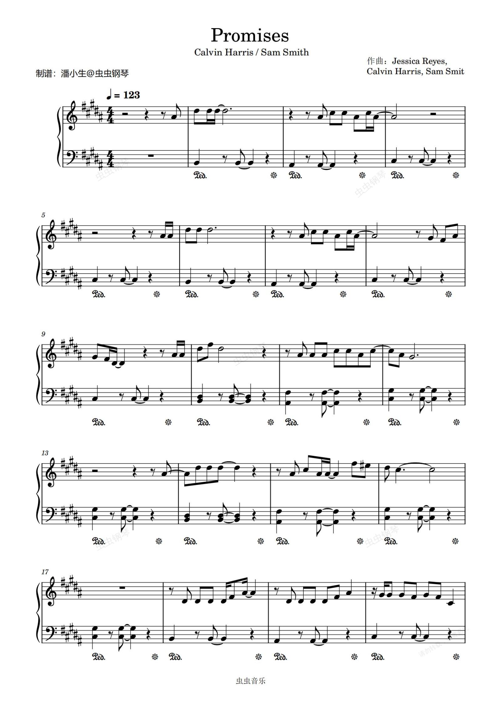 钢琴谱:Promises,原调 钢琴独奏谱,Calvin Harris &Sam Smith