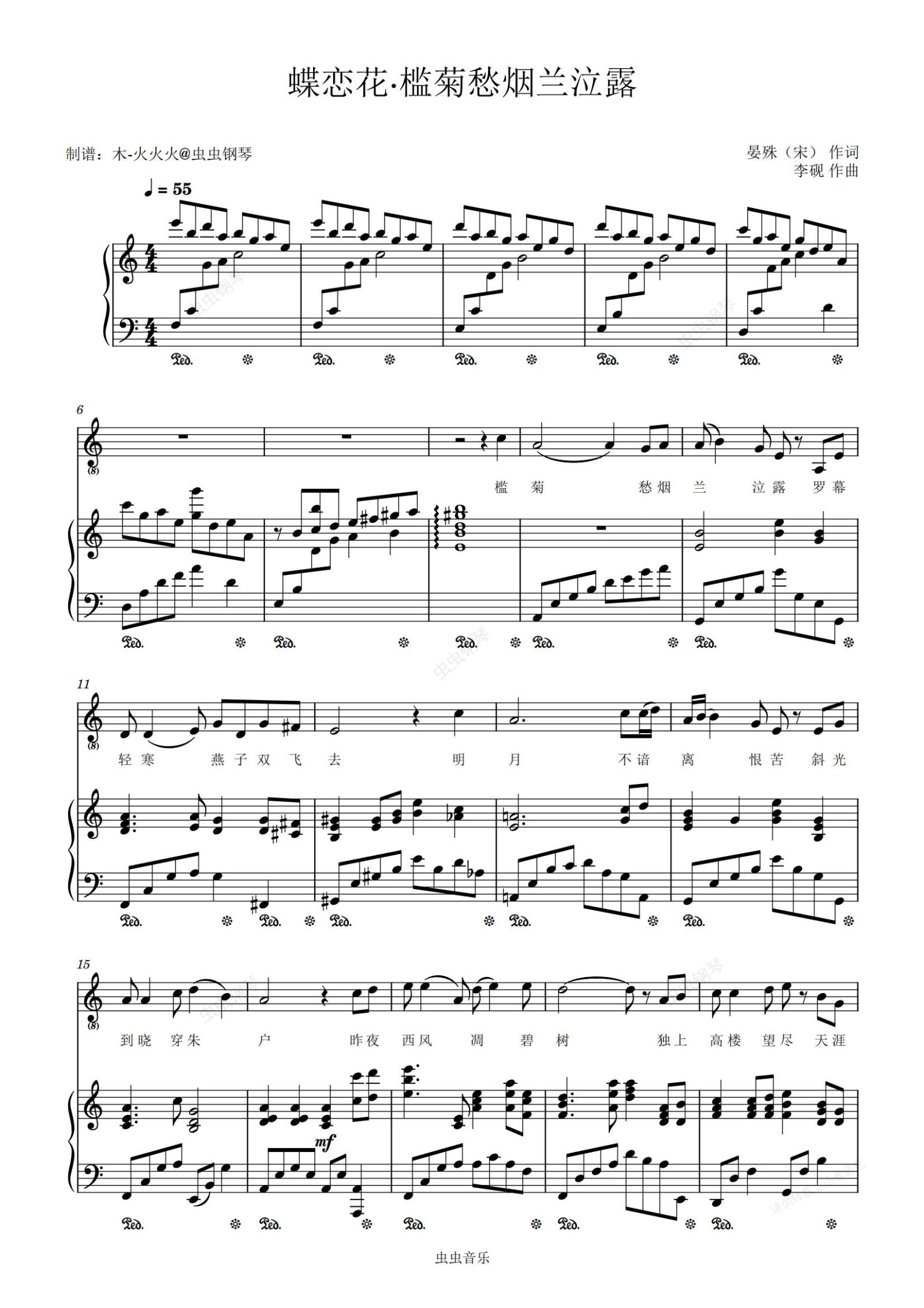 钢琴谱:声乐正谱:C调-蝶恋花·槛菊愁烟兰泣露
