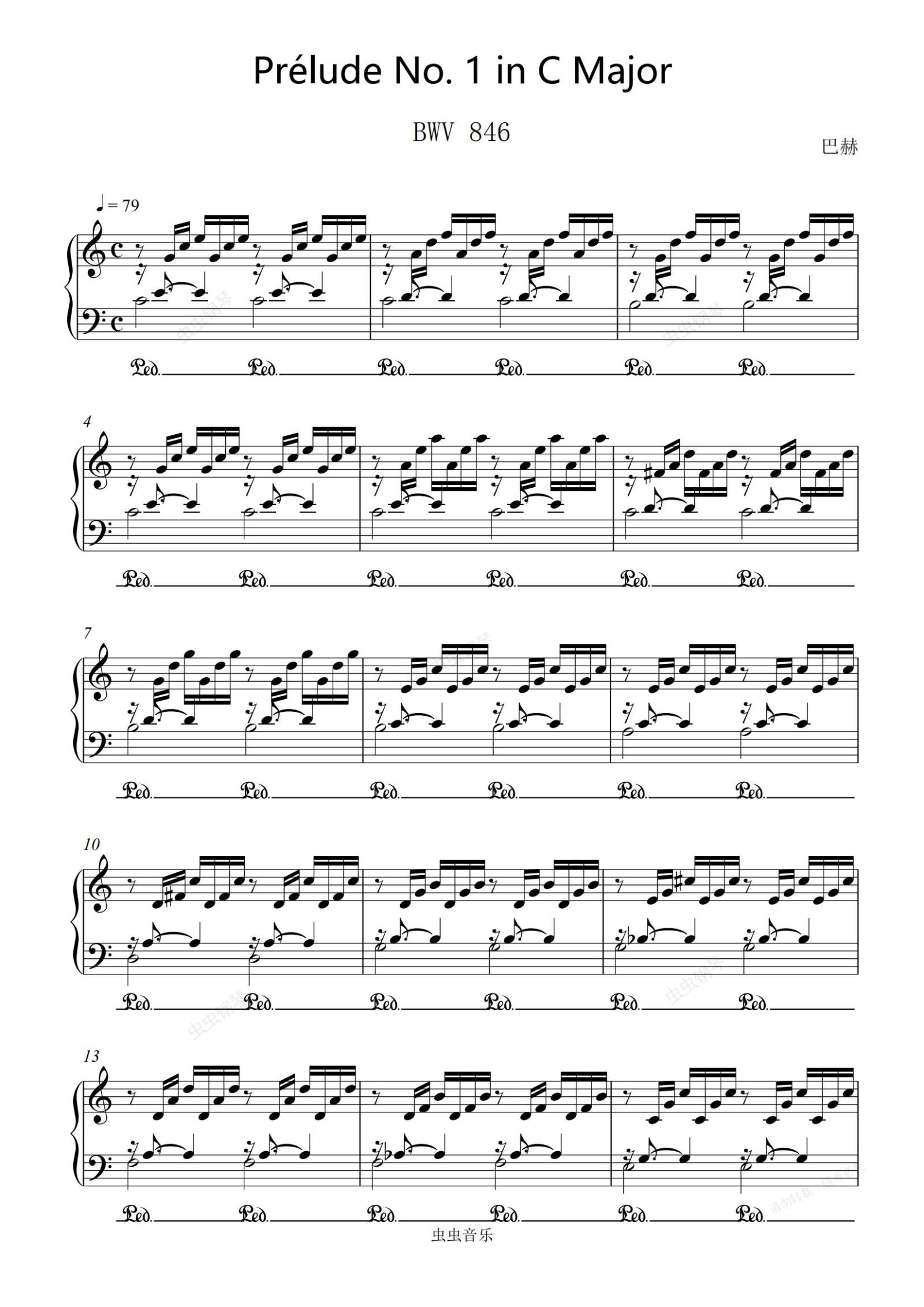 钢琴谱:巴赫 C大调第一号前奏曲 BWV846