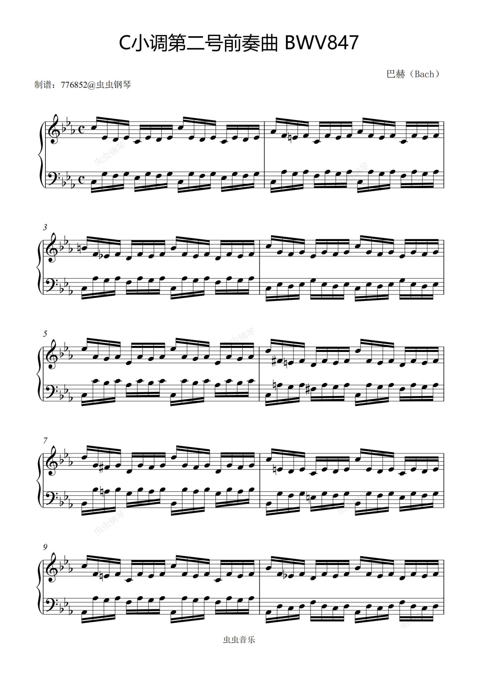 钢琴谱:巴赫 C小调第二号前奏曲 BWV847