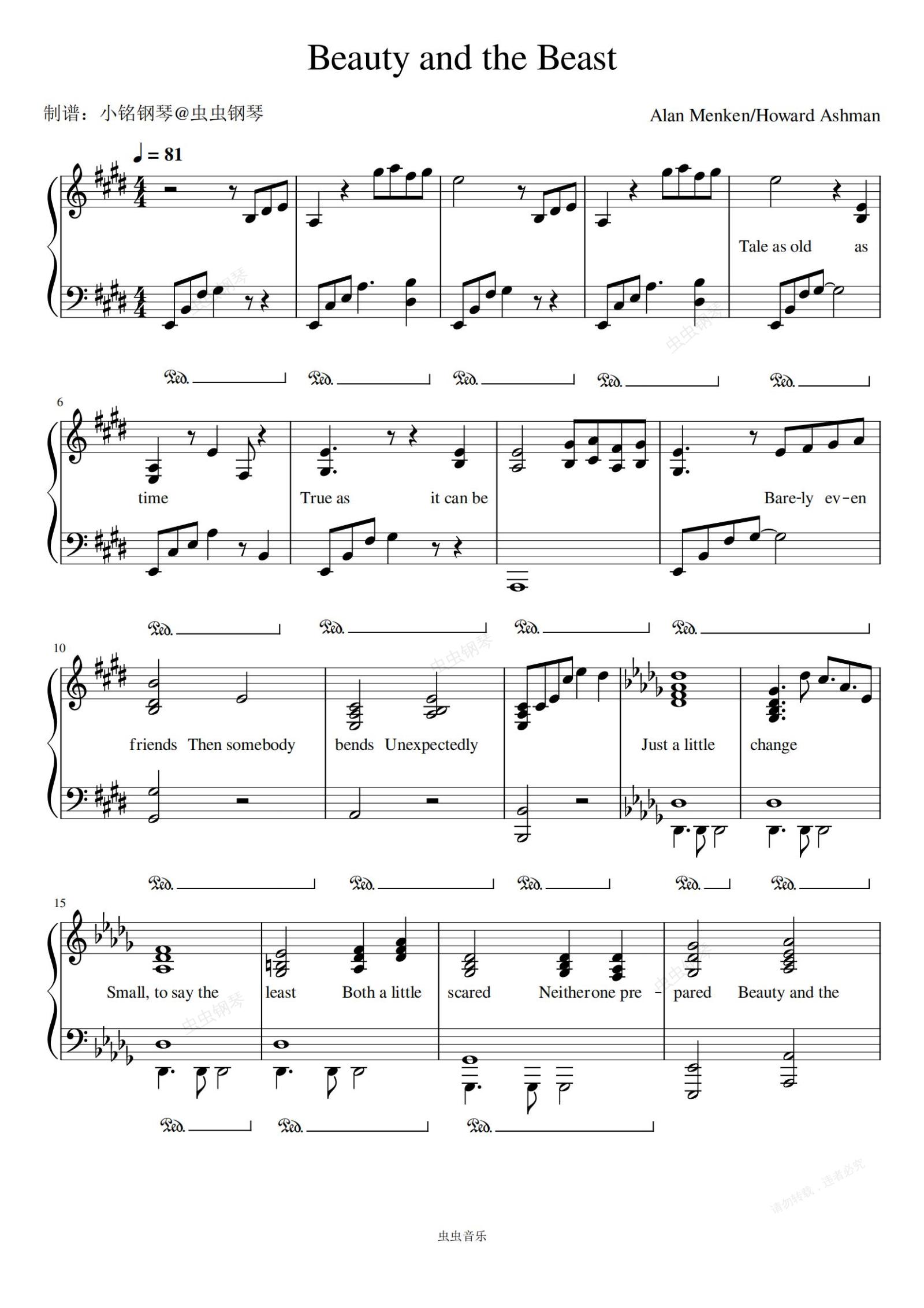 钢琴谱:Beauty and the Beast (美女与野兽) (《美女与野兽》电影主题曲)