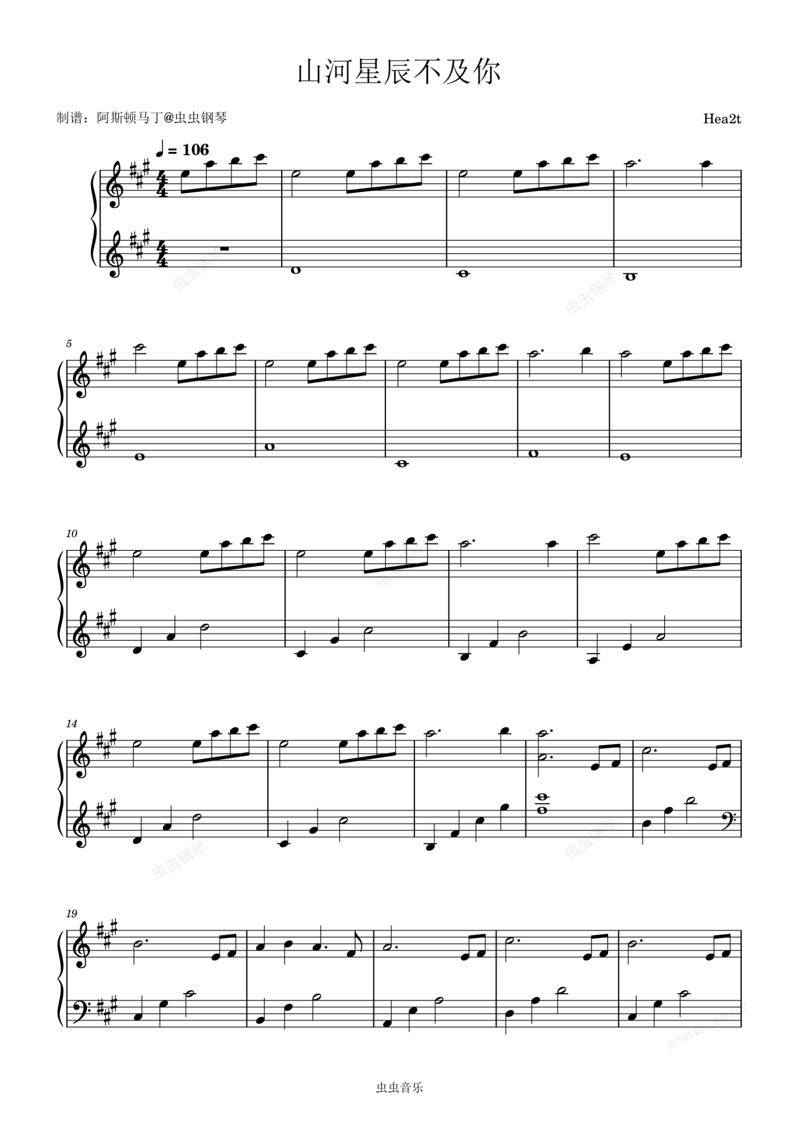 钢琴谱:山河星辰不及你(A调) - Hea2t