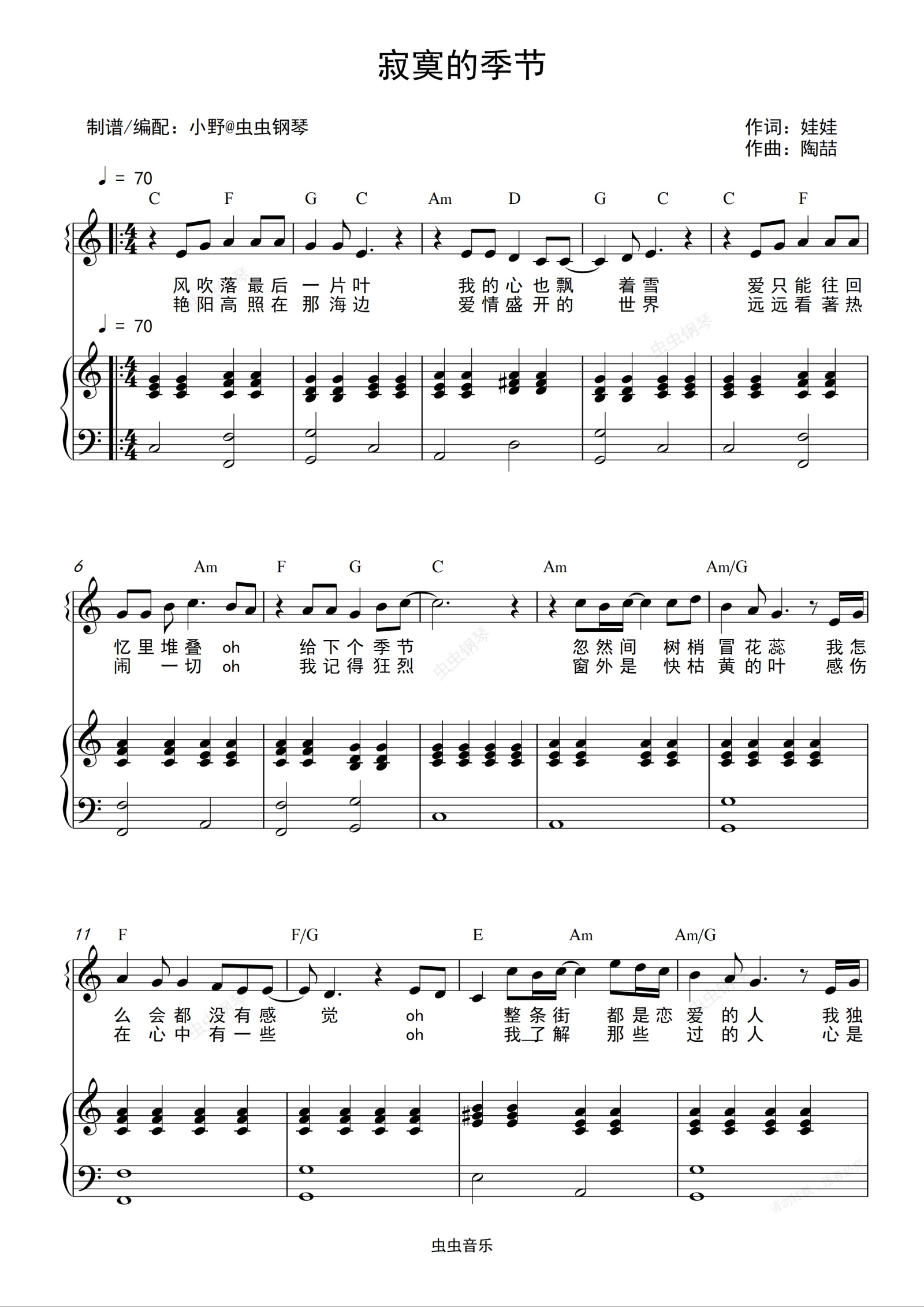 钢琴谱:寂寞的季节(和弦弹唱版)