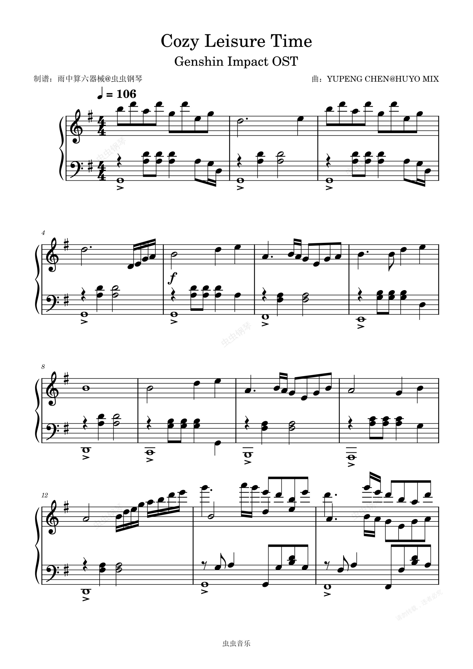 钢琴谱:品茗尝清心 望舒客栈日间音乐